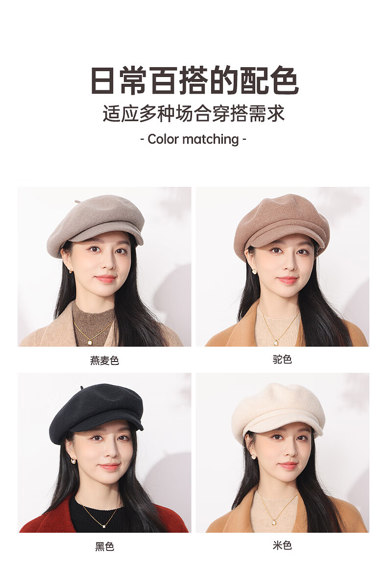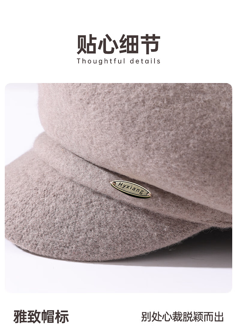 Hengyuanxiang beret women's autumn and winter warm wool baseball cap literary style fashion versatile handsome peaked cap birthday gift