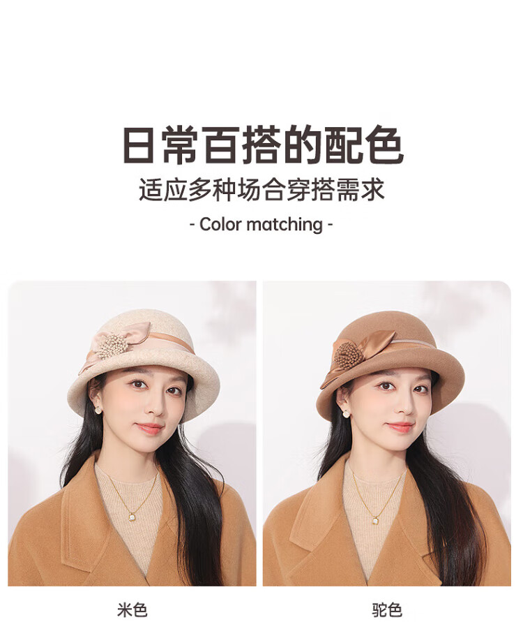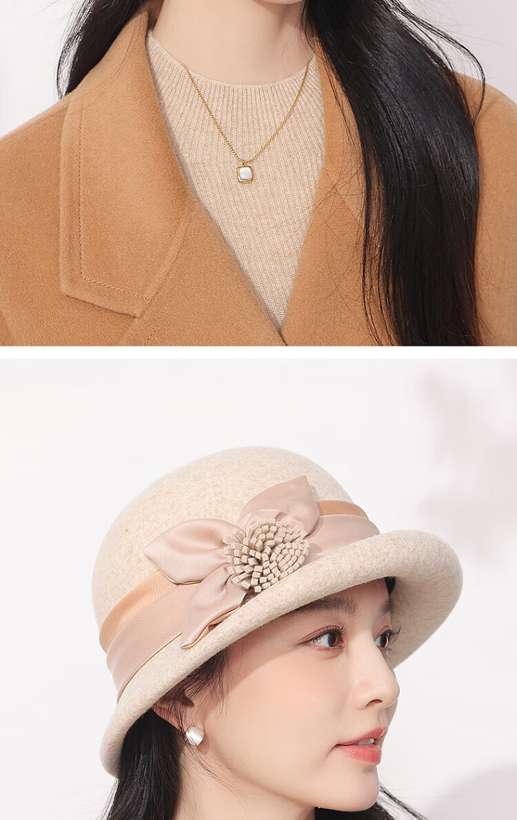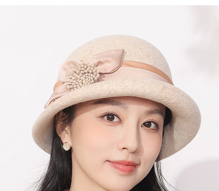 Hengyuanxiang hat women's autumn and winter warm hat woolen hat fashion versatile fisherman hat birthday gift beige