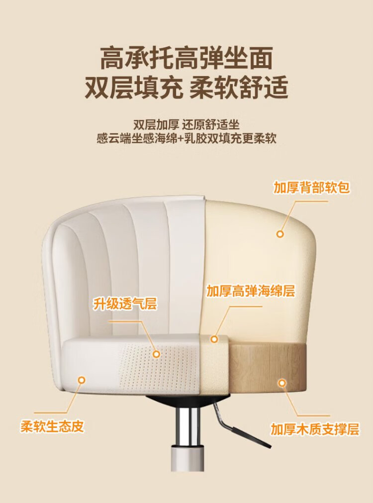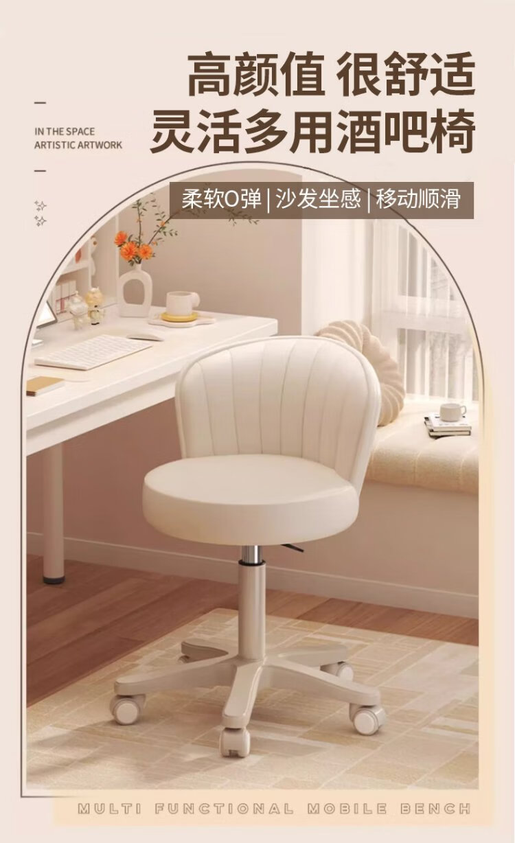 Jingcai bar chair liftable makeup chair bedroom dressing table stool beauty chair swivel chair JBY10 beige
