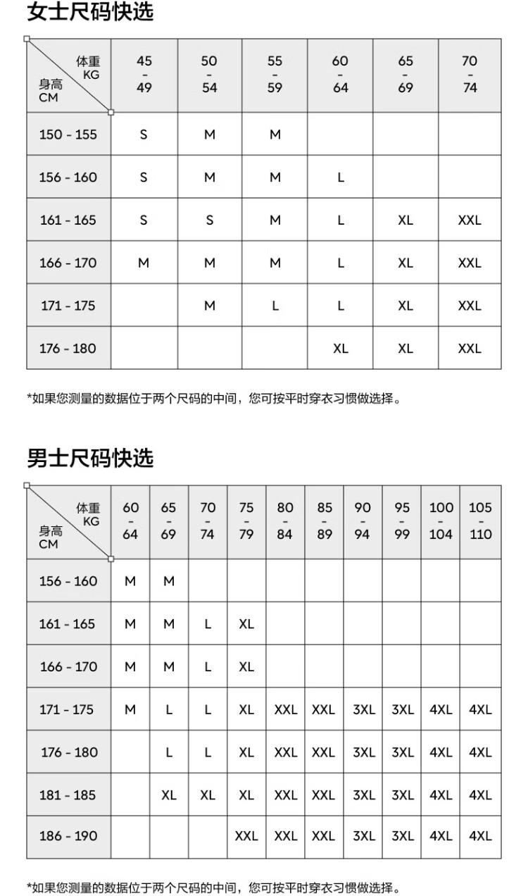 China (cm) 160-165/84-86 165-170 / 88-90 167-172 / 92-96 168-173 / 98-102 170-176 / 106-110