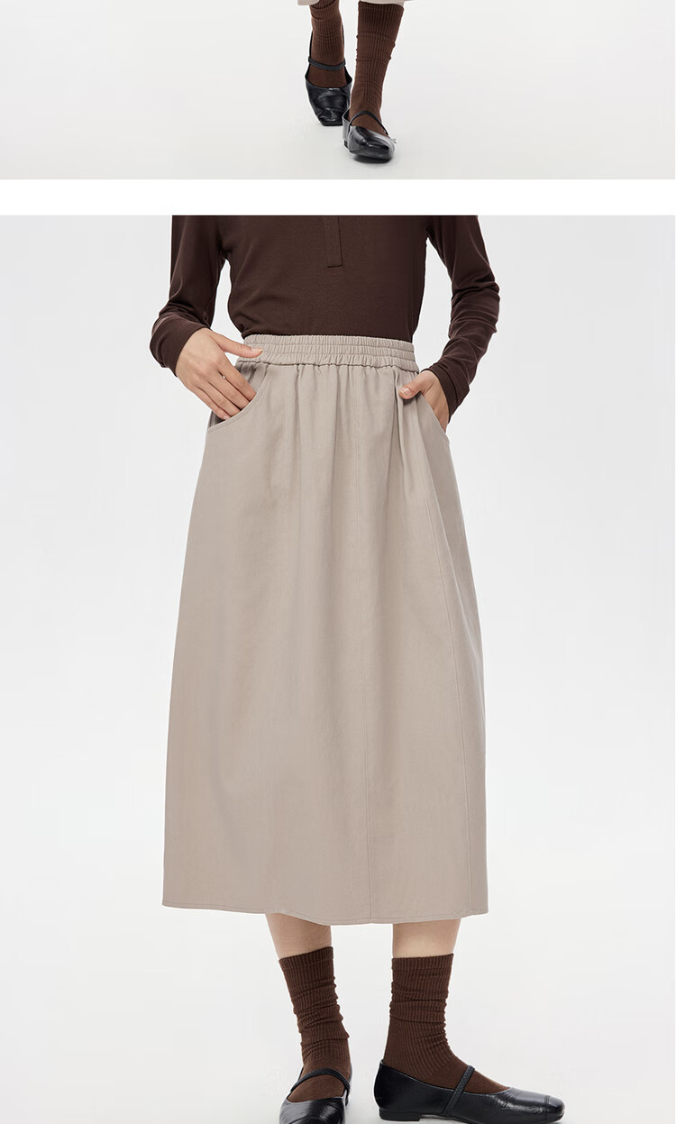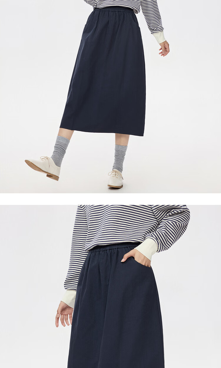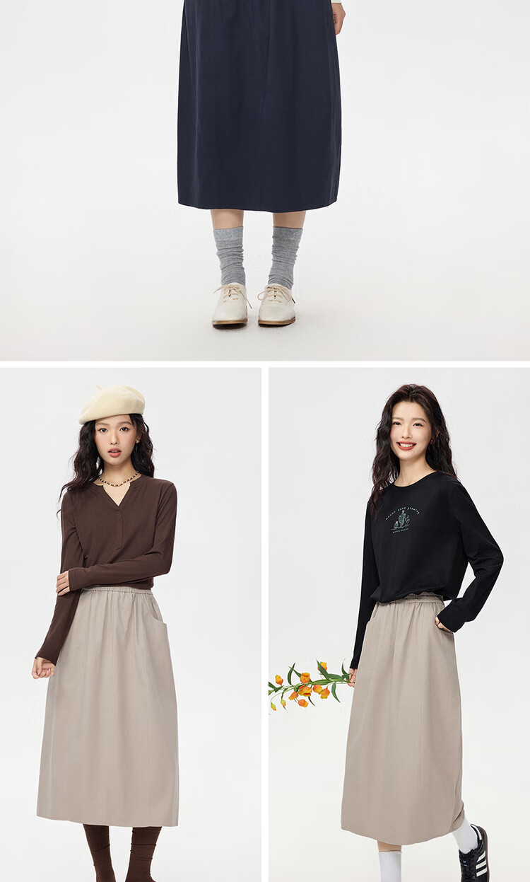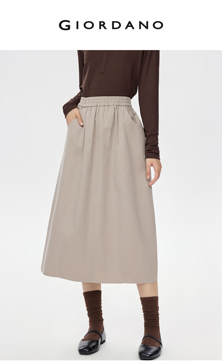 Giordano half-length skirt for women autumn and winter pure cotton brushed elastic waist sweet age-reducing flower bud skirt 05465678