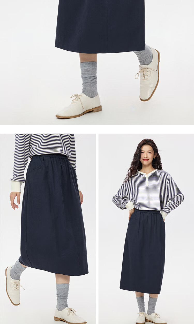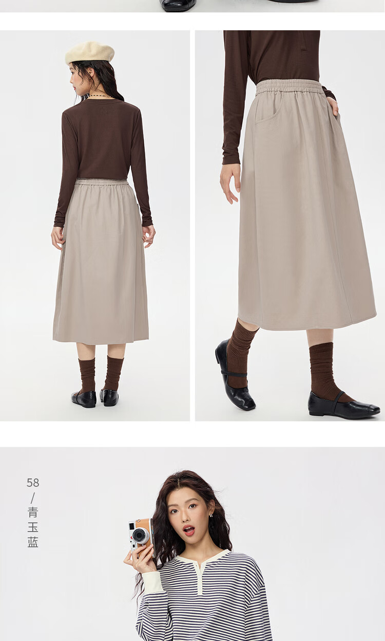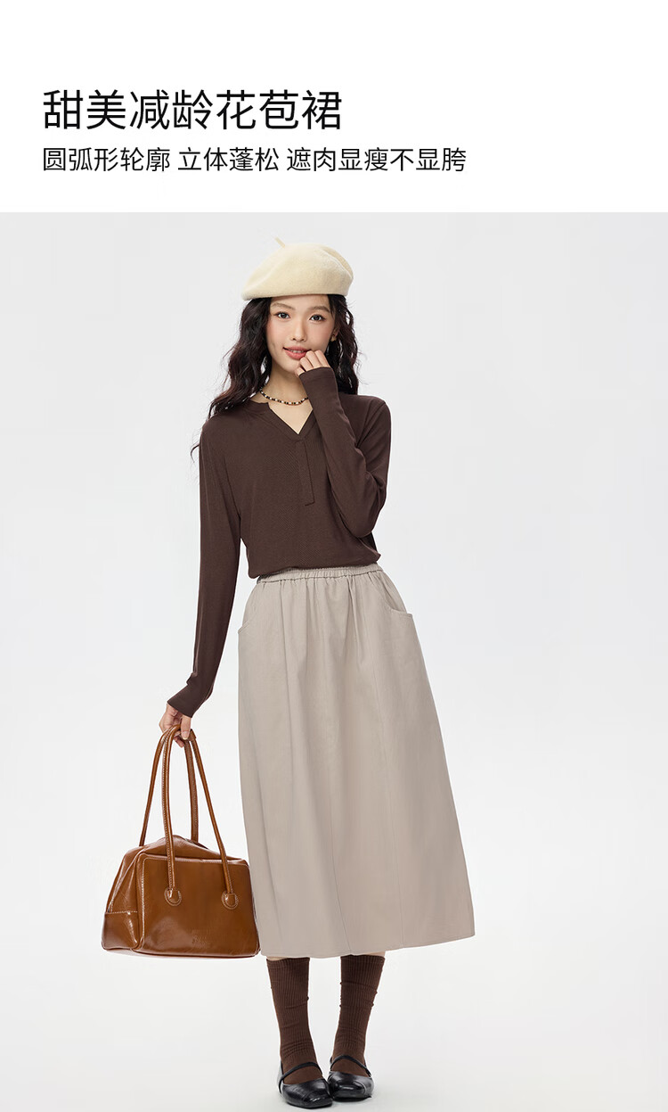 Giordano half-length skirt for women autumn and winter pure cotton brushed elastic waist sweet age-reducing flower bud skirt 05465678