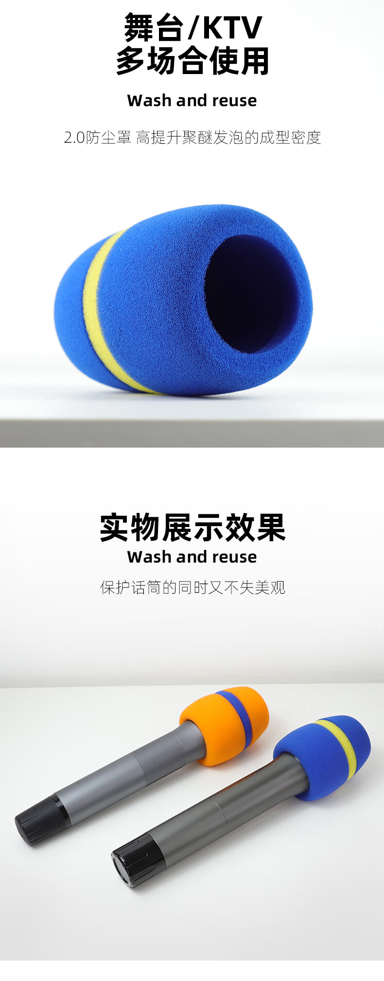 Suly thickened microphone cover sponge head high density sponge cover washable mesh cover microphone blowout cover dustproof windproof cover anti-fall protective cover non-disposable ktv microphone cover wheat cover 1.0 blue sponge cover