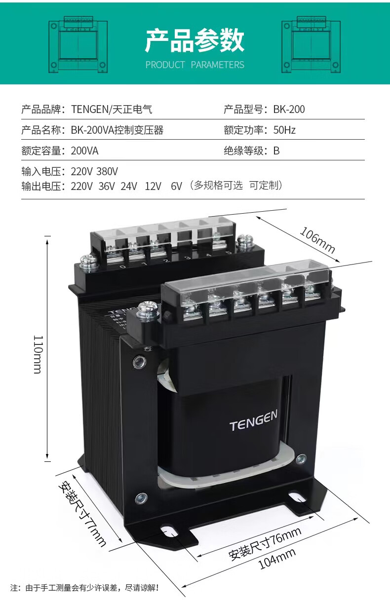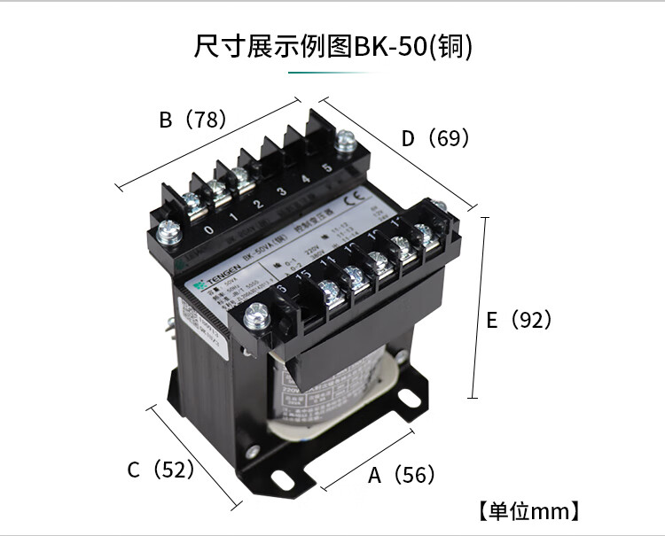 Tianzheng Electric TENGEN control transformer BK-50VA (copper) 220/220 isolation (1 unit/box) 220V to 220V with isolation