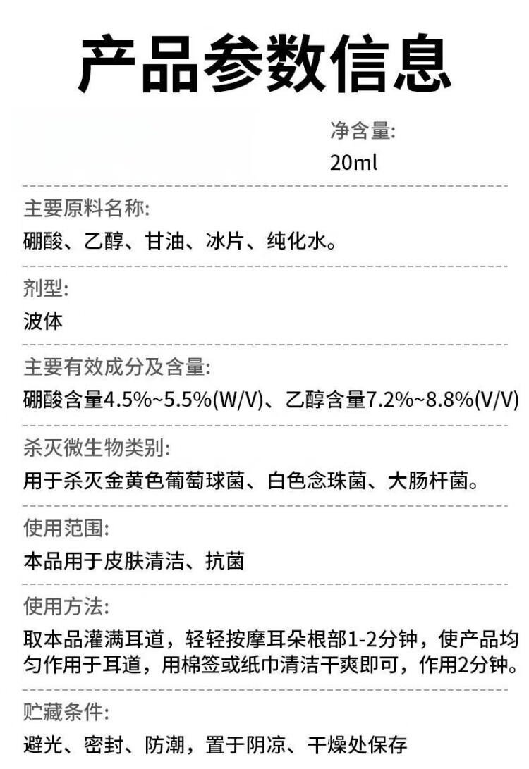 BRGATIN boric acid alcohol ear drops 3%-4% ear canal ear itching fungal infection 20ml ear cleaning children adult inflammation cleaning
