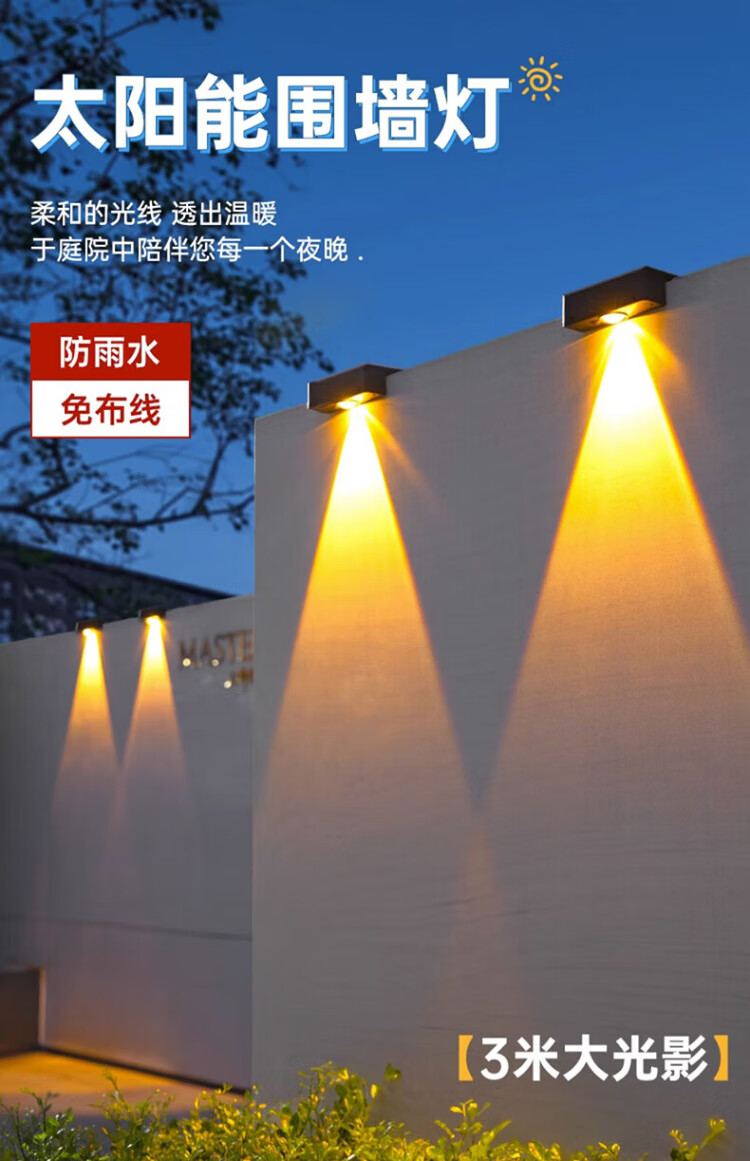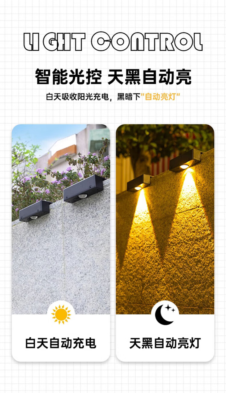 Yuanfang Solar Lighting Wall Washing Light Control Induction Outdoor Lighting Garden Landscape Wall Lamp Waterproof Floodlight Four Beams
