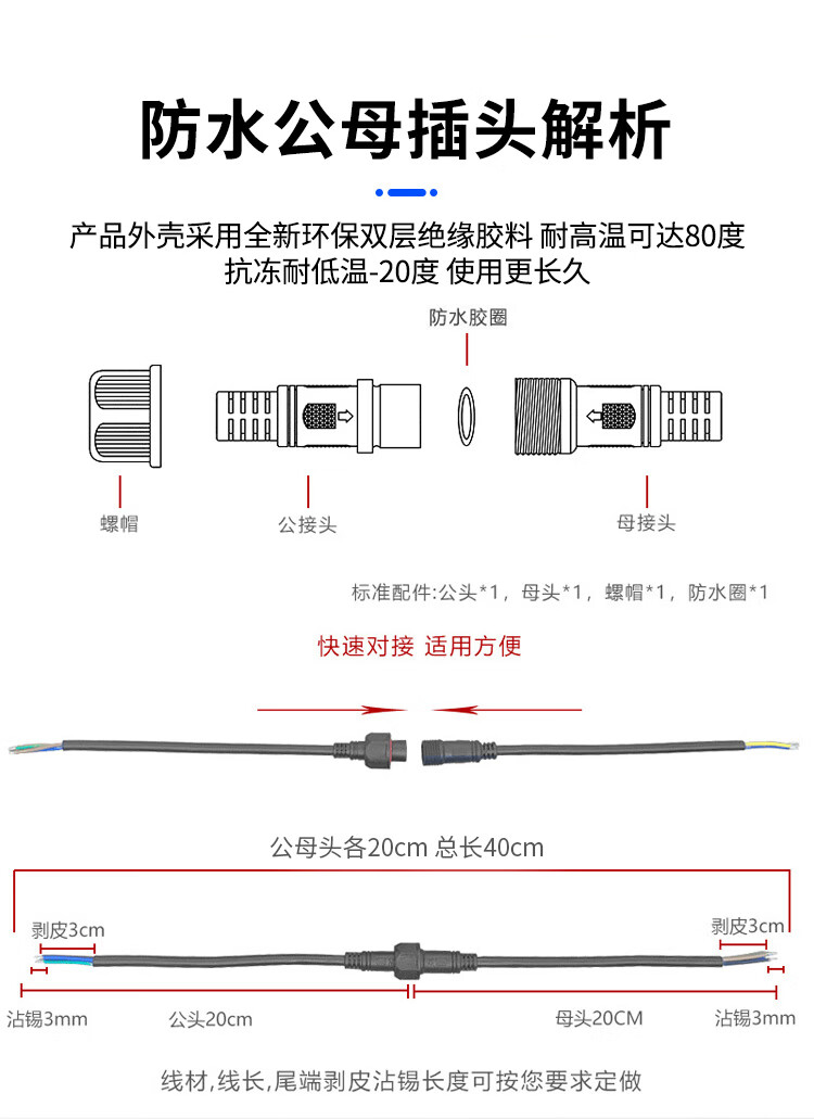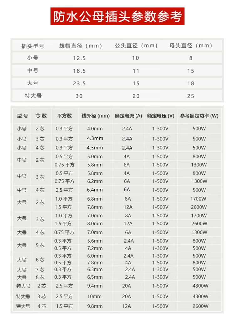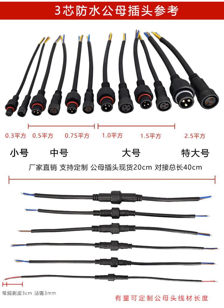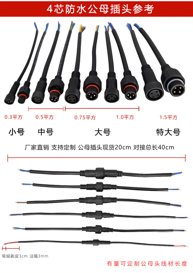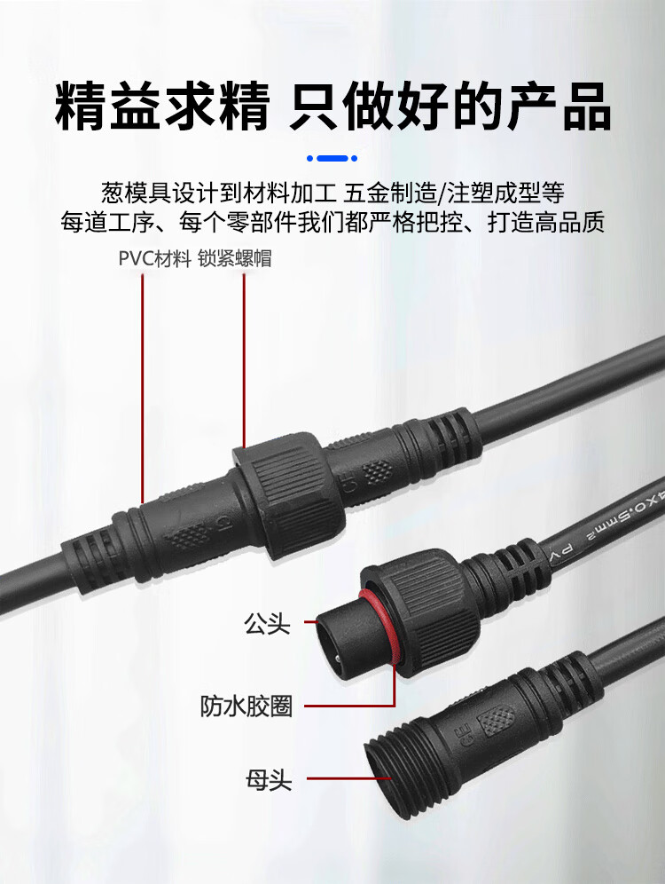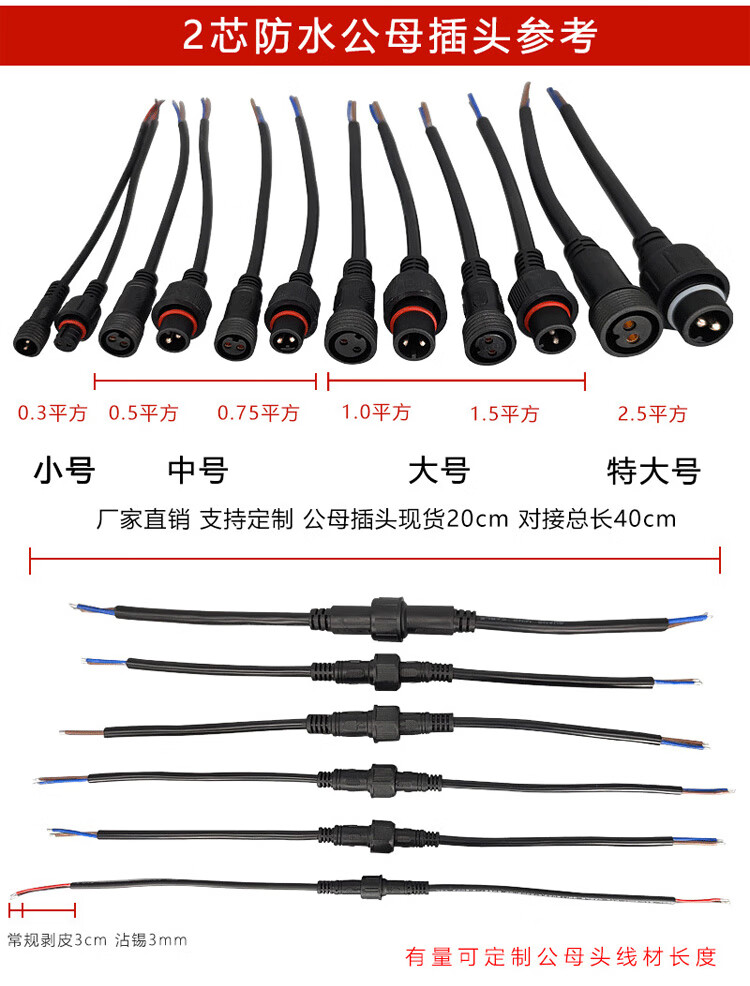 Baye Aviation Industry Waterproof Butt Plug Male and Female Power Cable 2 Cores - Medium Size 0.75 Square 5 Sets BY-HK2LJX3