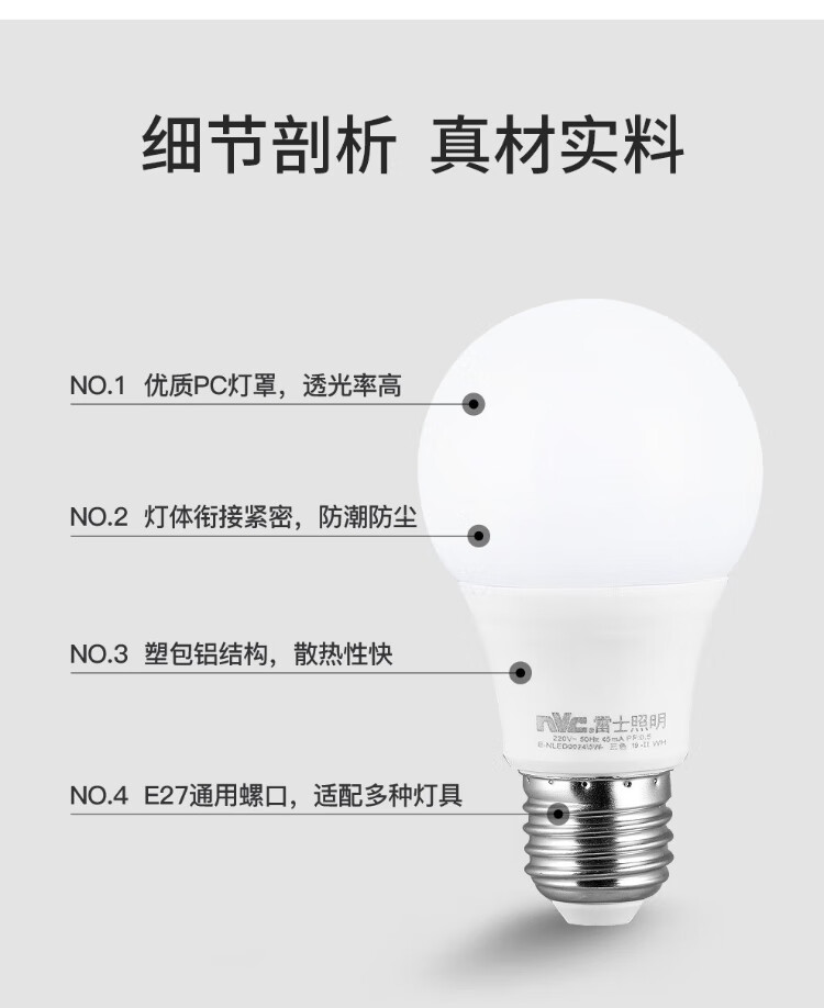 NVC LED light bulb bulb e27 large screw household commercial high-power light source energy-saving lamp 5 watt white light secondary energy efficiency
