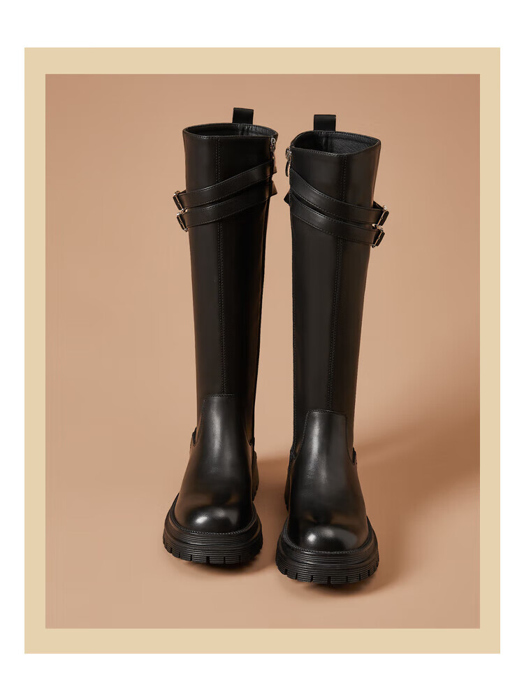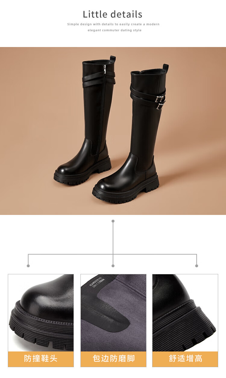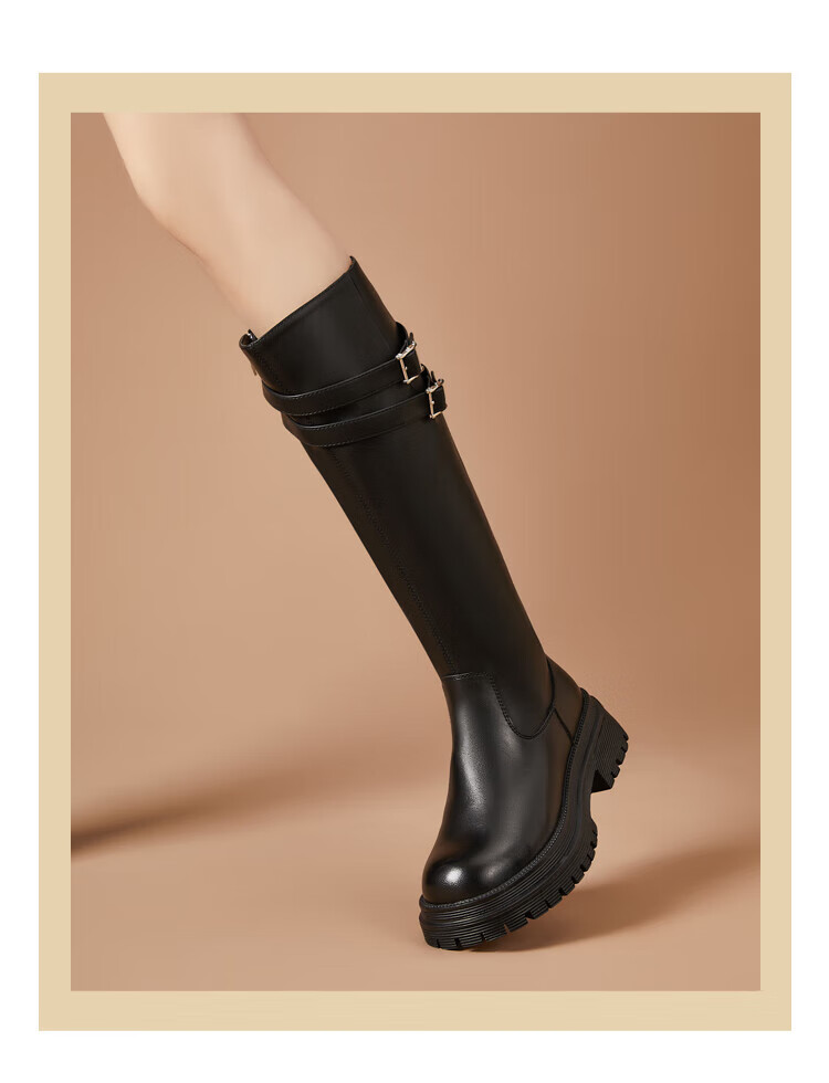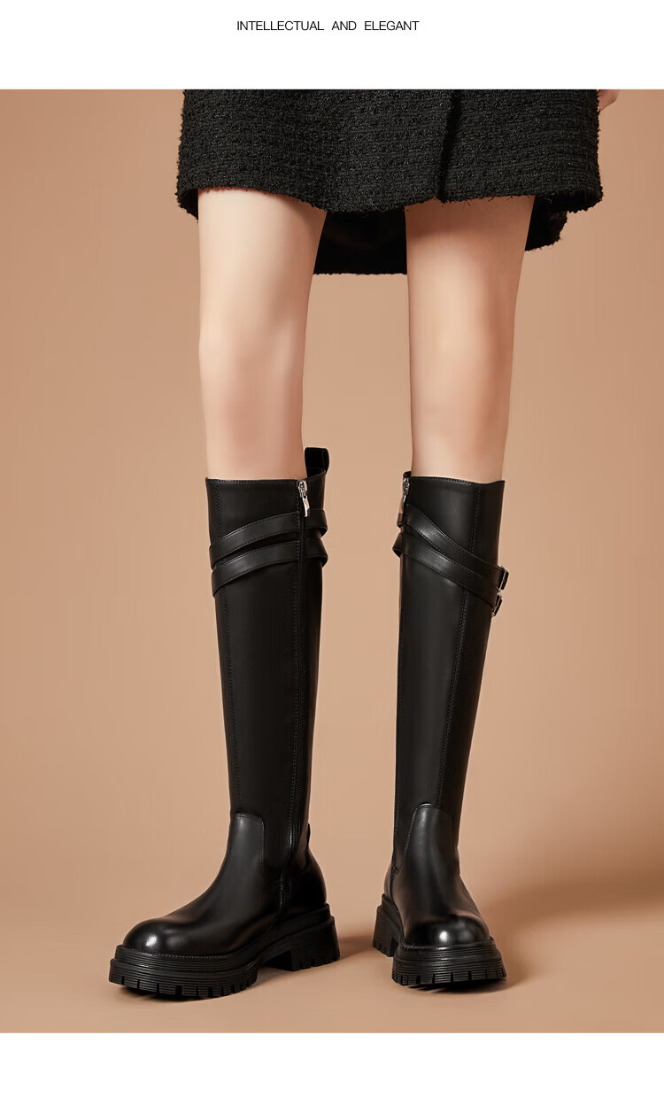 Daphne autumn and winter new women's shoes long Martin boots zipper fashion casual versatile single boots women's black 37