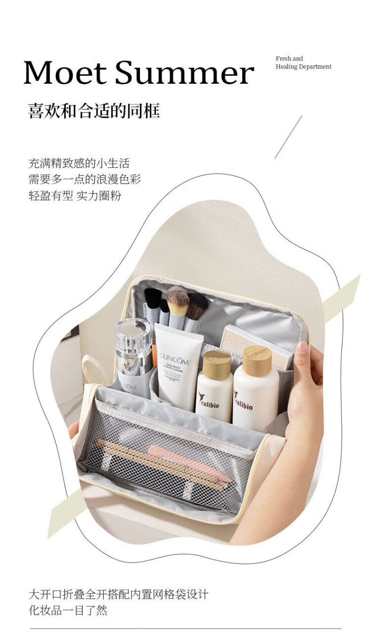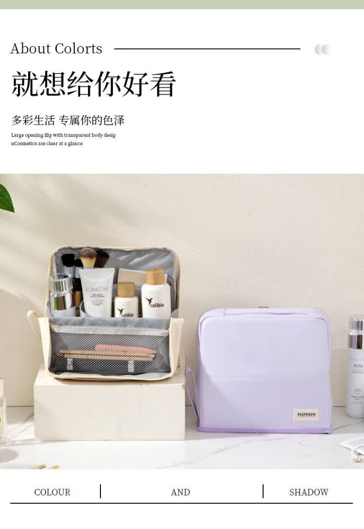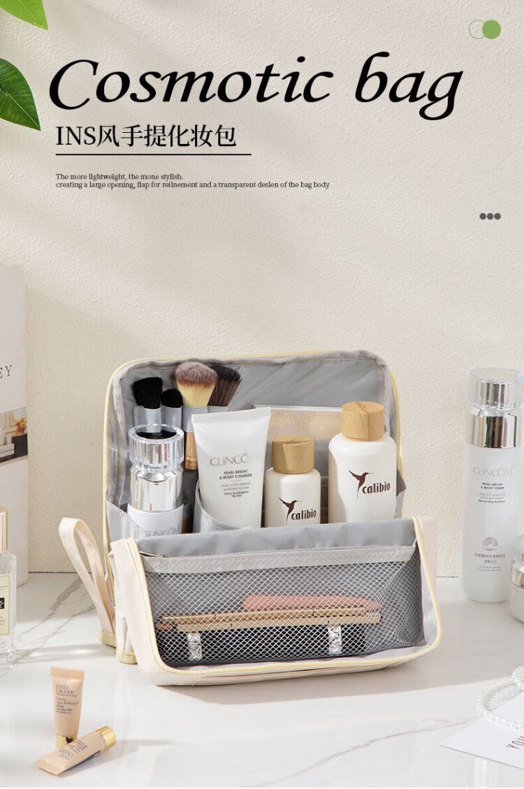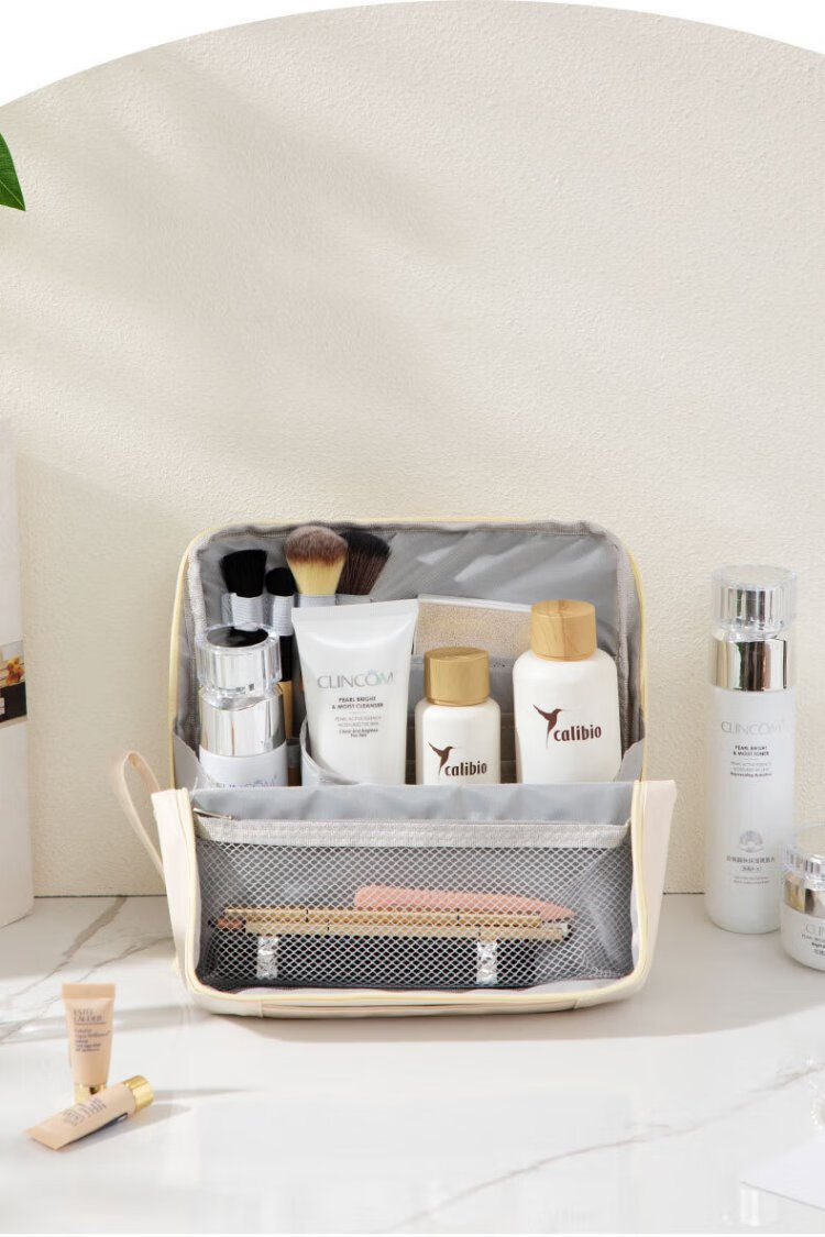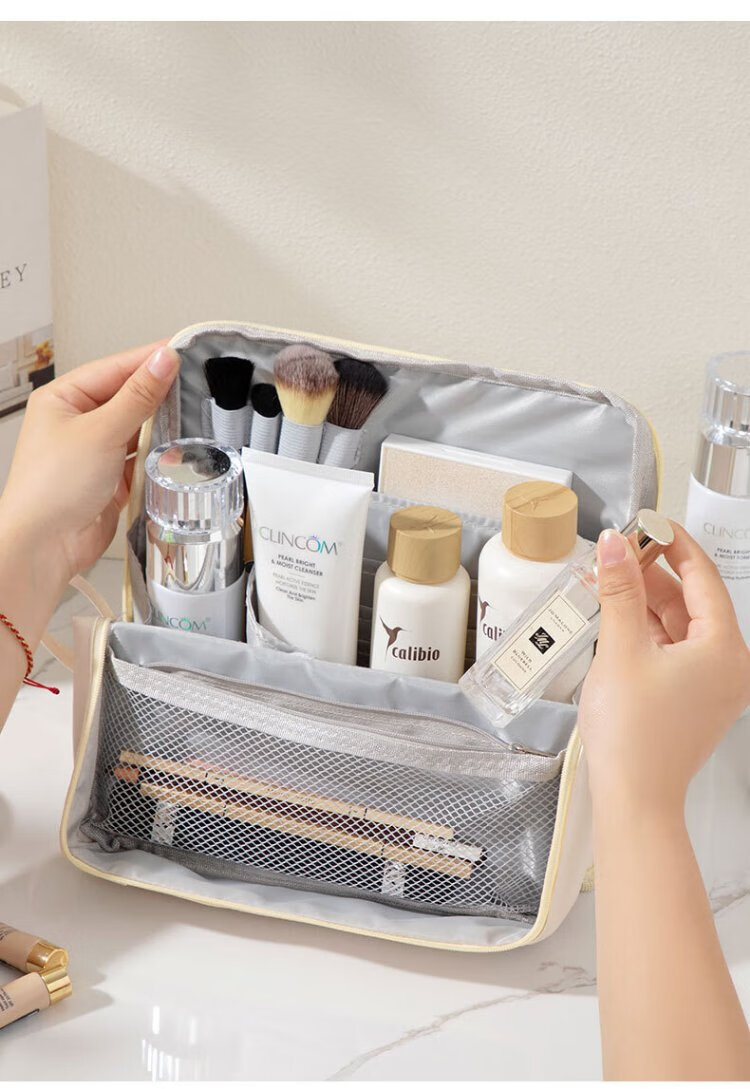 Hakkainiao vertical cosmetic bag for women, large capacity, foldable, portable, travel portable, partitioned cosmetics storage and toiletry bag