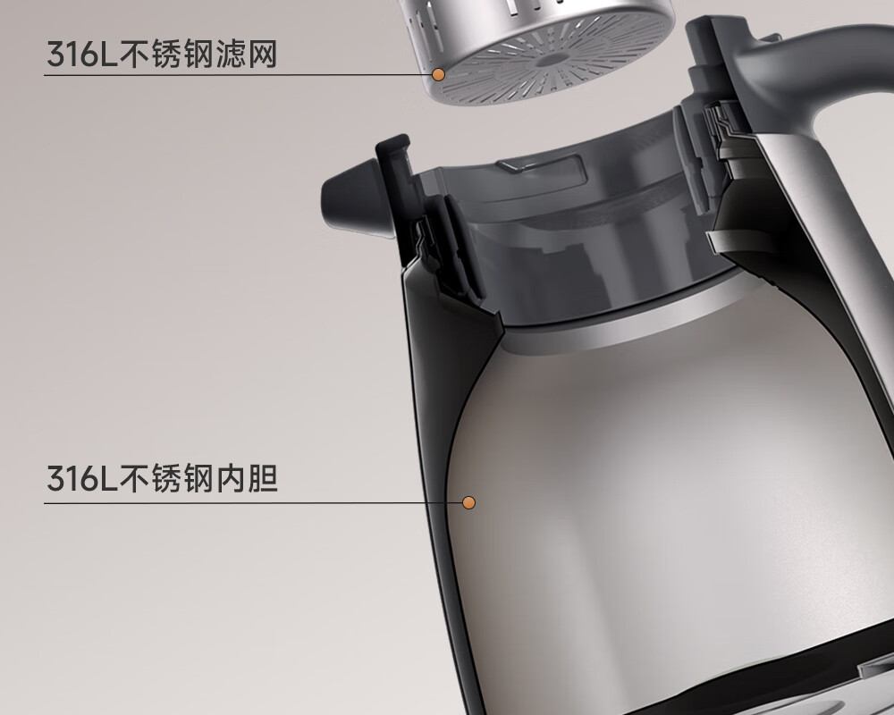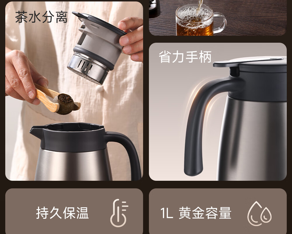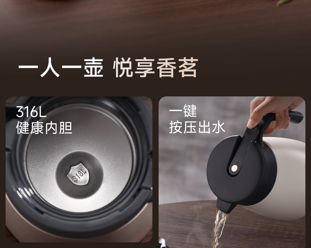 FGA Fuguang stewing teapot household stewing tea stewing insulation kettle 316L stainless steel tea and water separation office large capacity teapot
