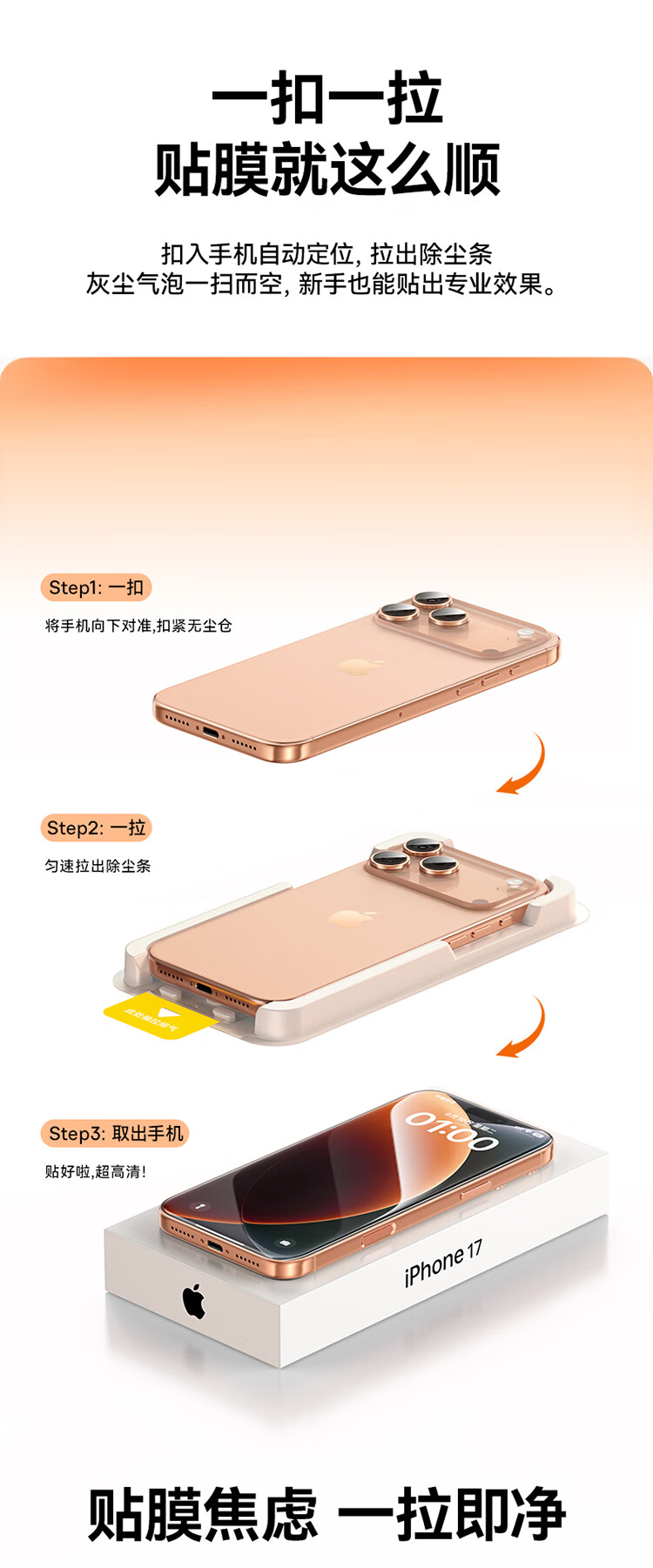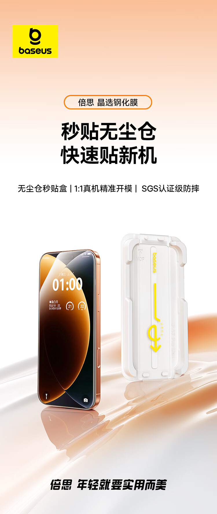 Baseus Beijing Pei丨Double-piece dust-free warehouse suitable for iPhone17 tempered film Apple 17 mobile phone film HD non-blocking screen anti-fingerprint 17 protective film dust-free warehouse second film application