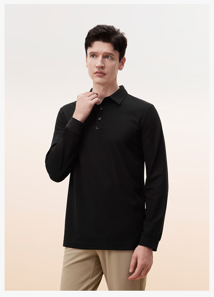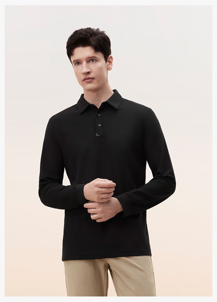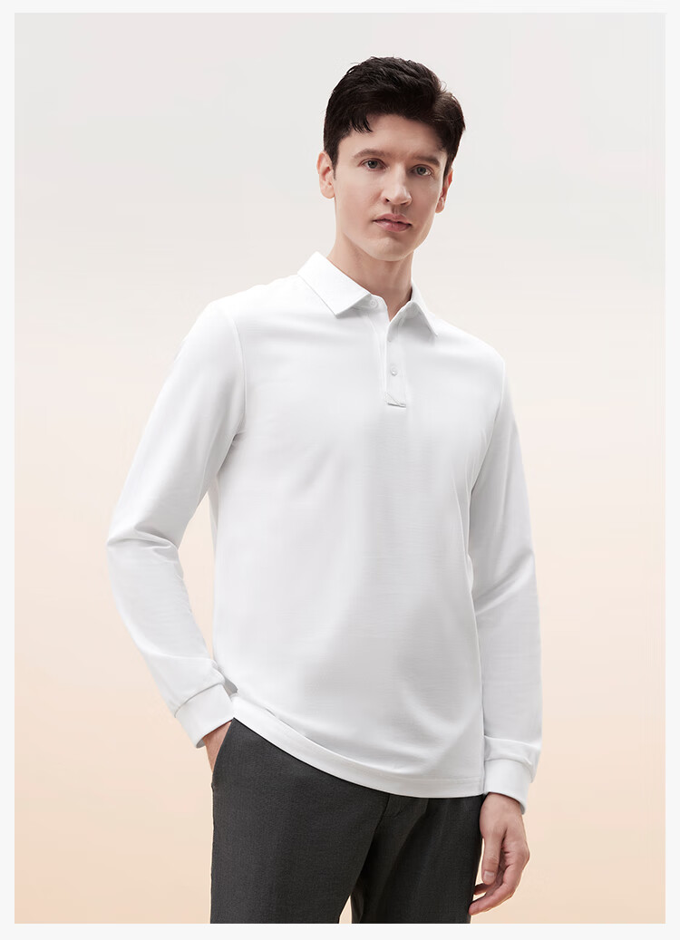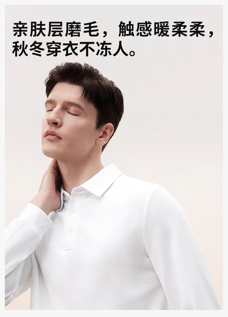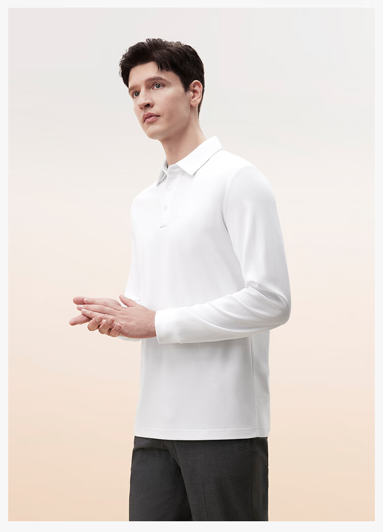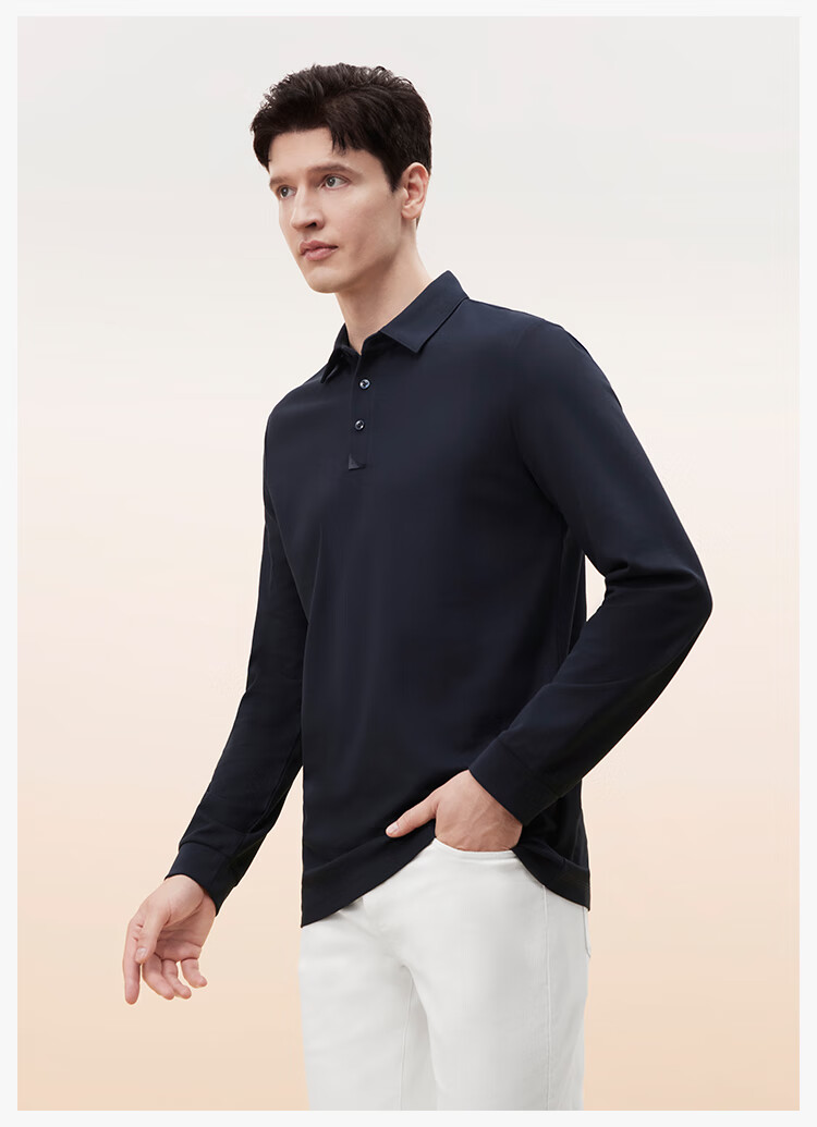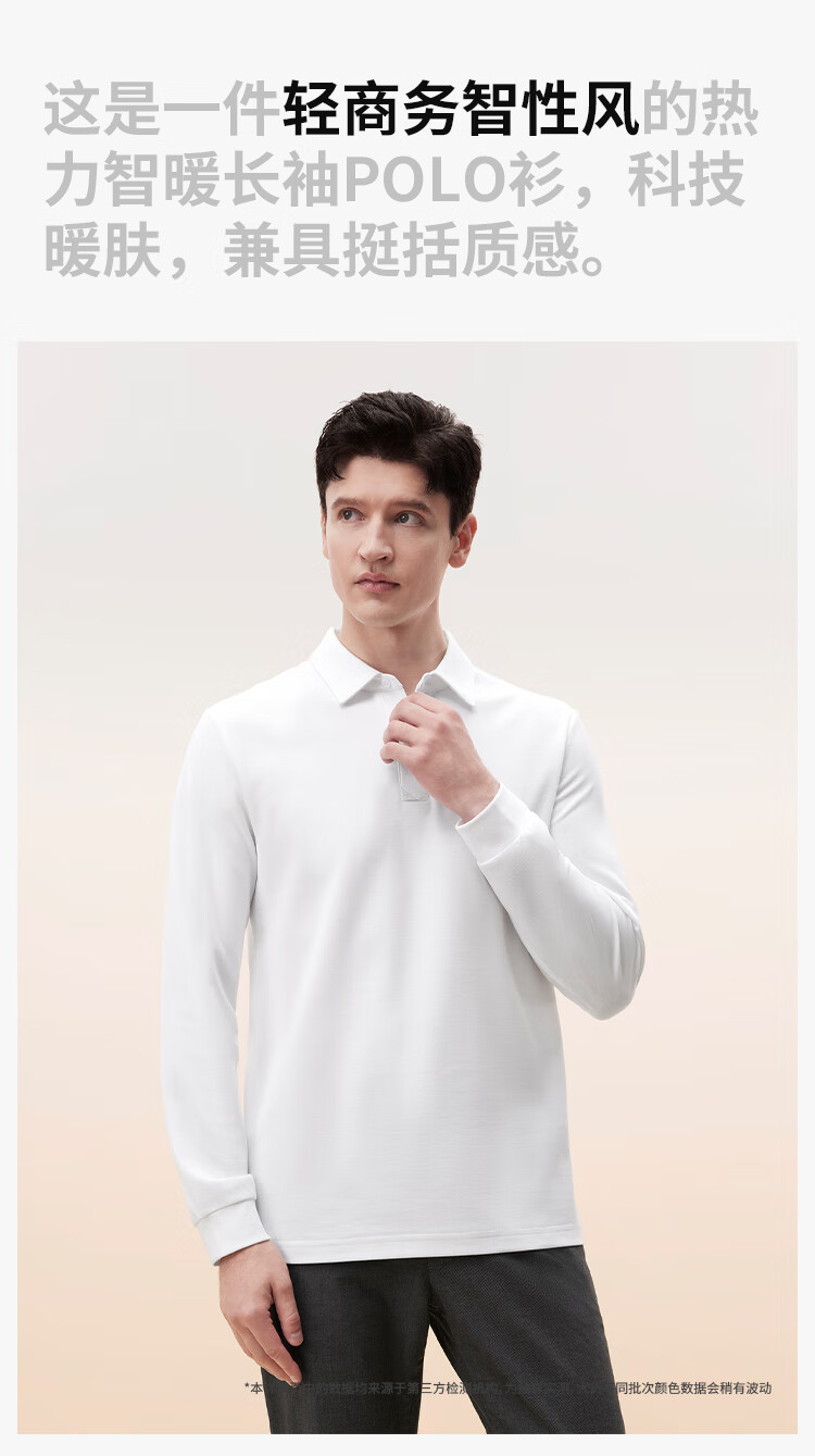 Thumb white small T men's thermal smart warm long-sleeved POLO shirt autumn lapel business versatile top T-shirt navy blue 2XL