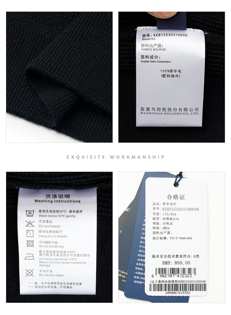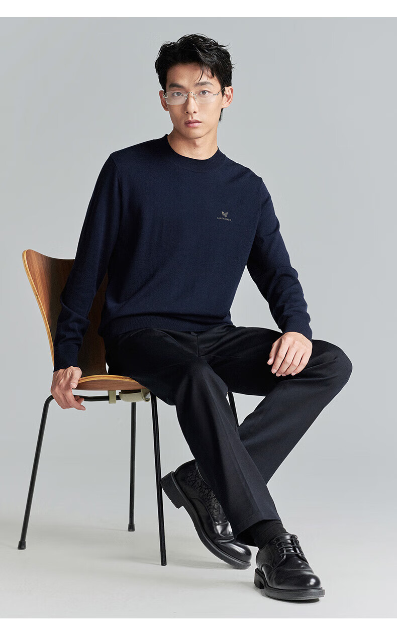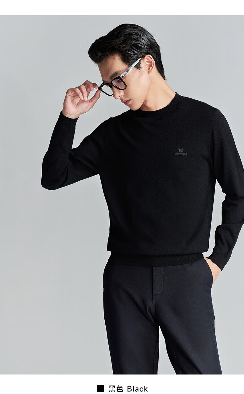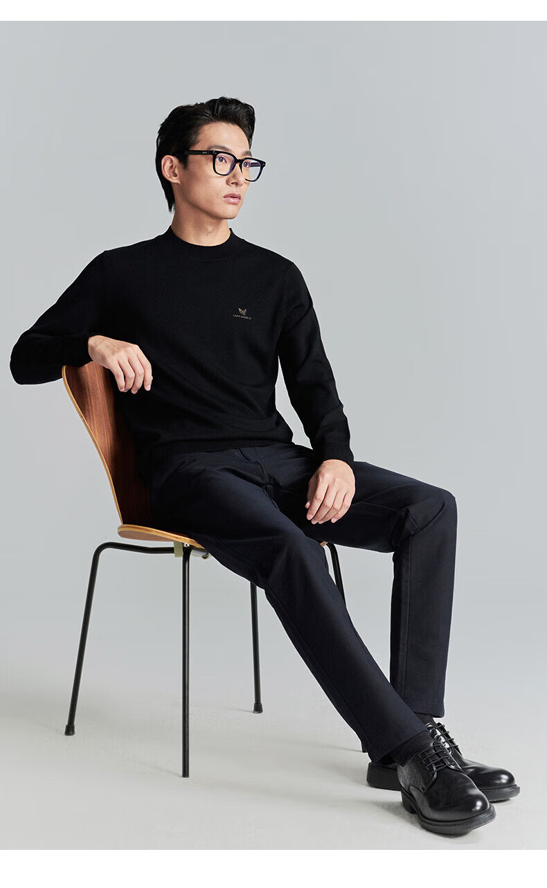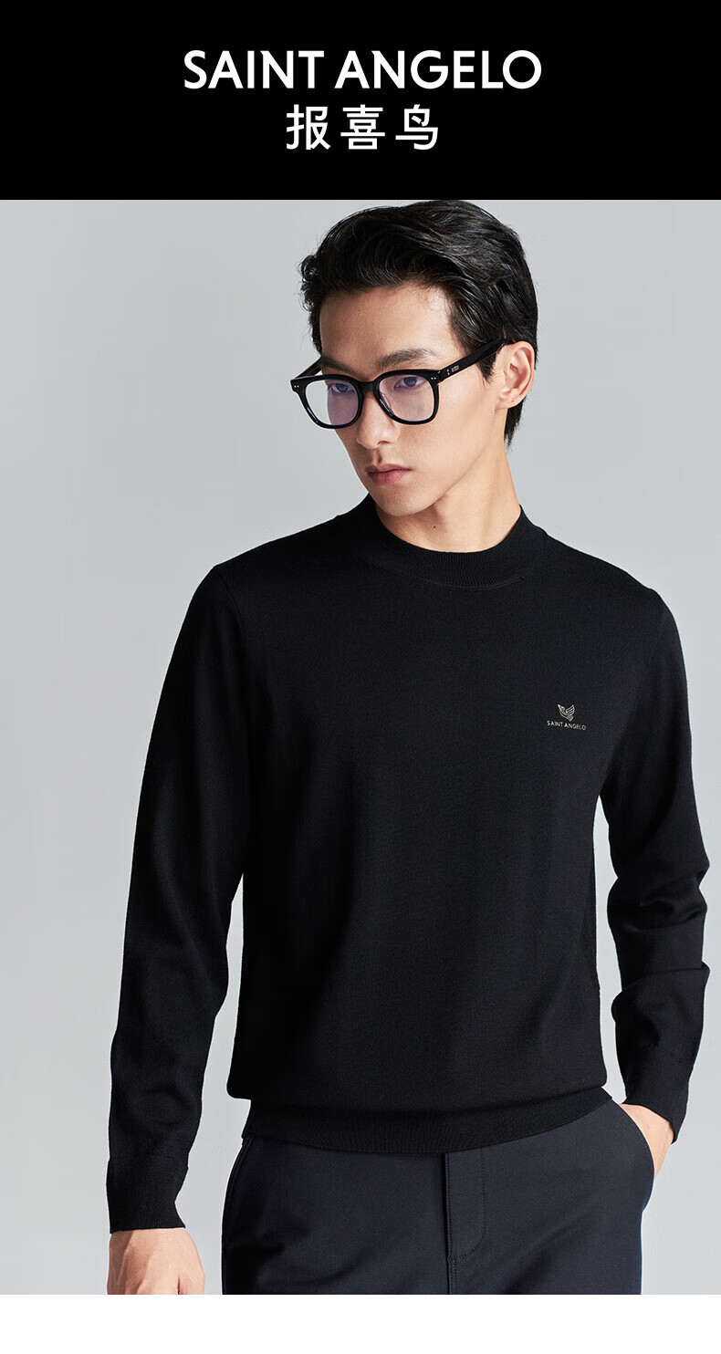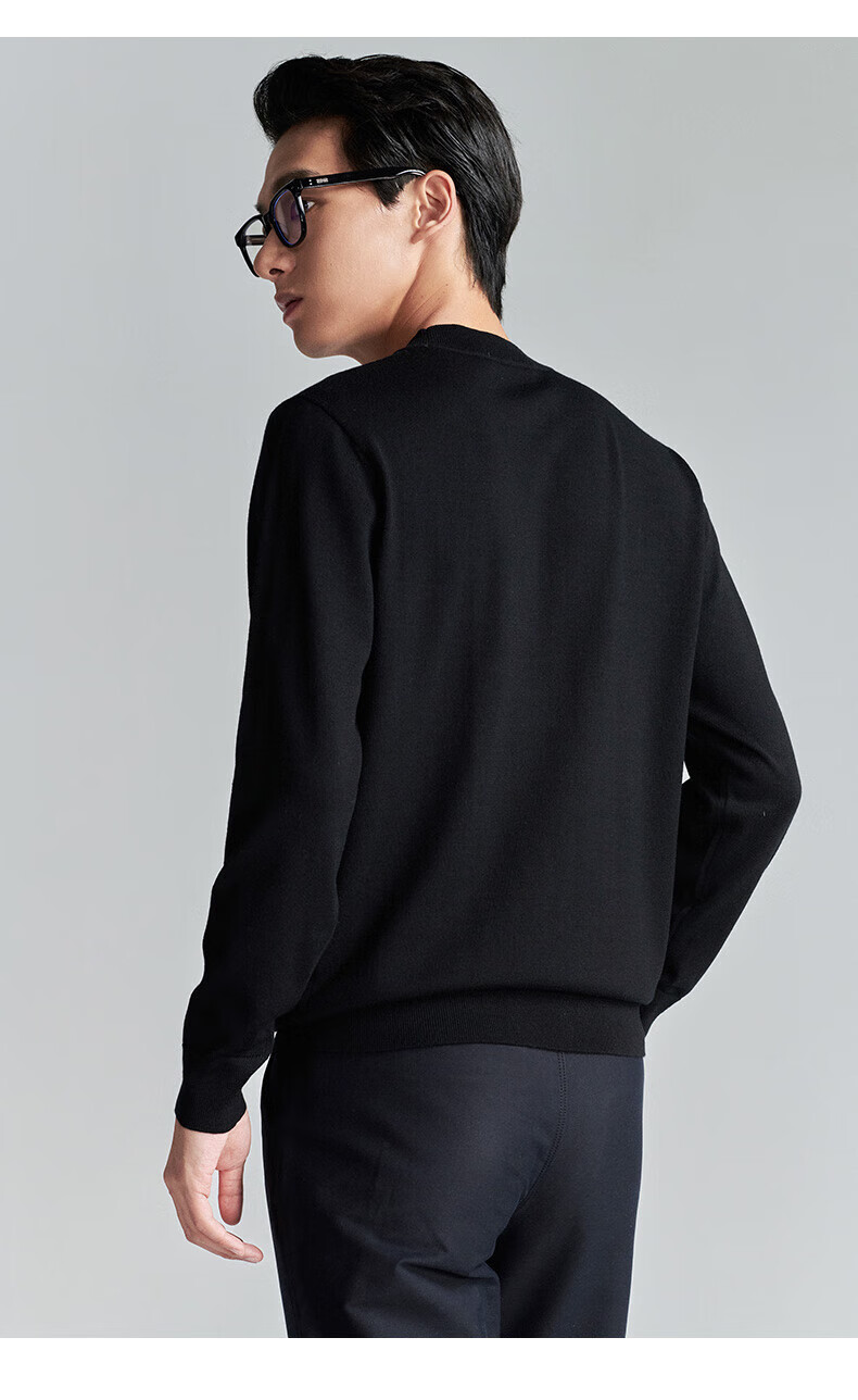 Announcement Bird Machine Washable Wool Sweater Men's Easy Care Half-Turtle Collar Knitted Sweater KEBY253031U Black L-48