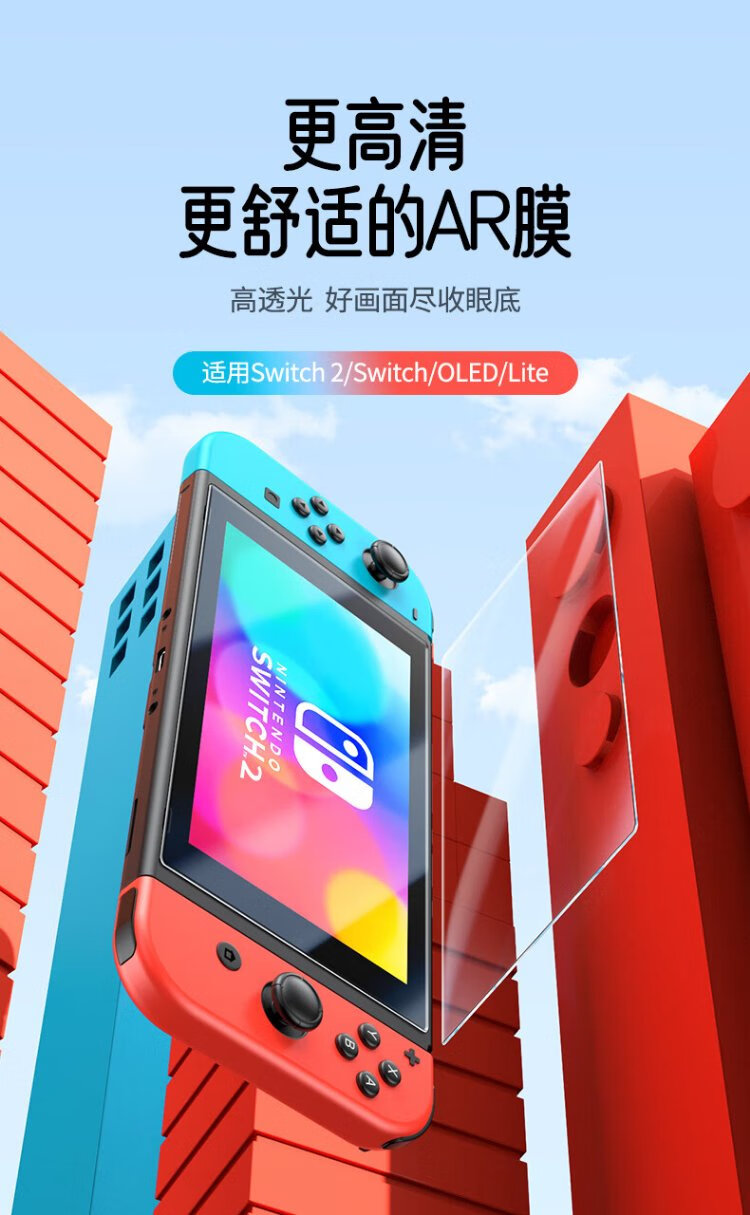 Green Alliance is suitable for Switch 2 generation tempered film AR film 2025 ns2 is suitable for Nintendo Nintendo game console AR anti-reflective high-definition full-screen anti-fingerprint protection screen film