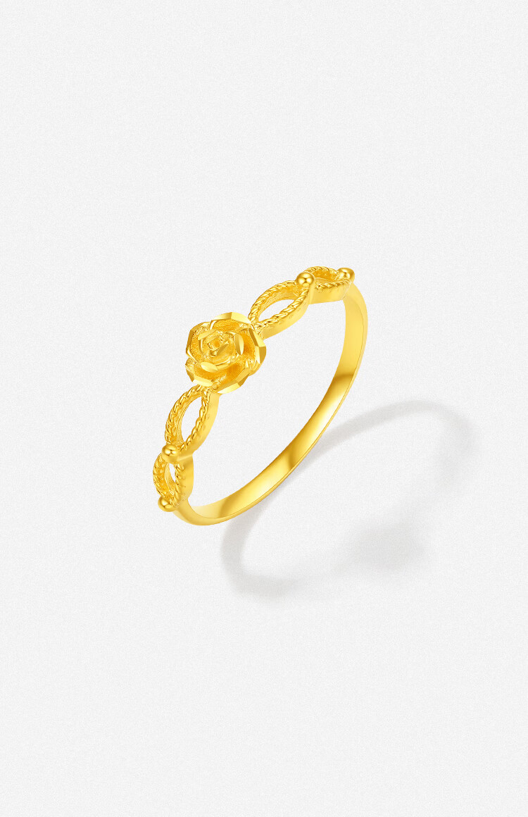 Saturday Blessing Yellow 18K Gold Ring Women's Rose Flower Birthday Gift C0114757 No. 14