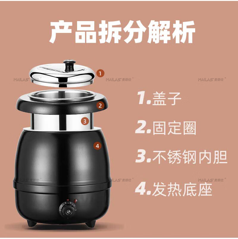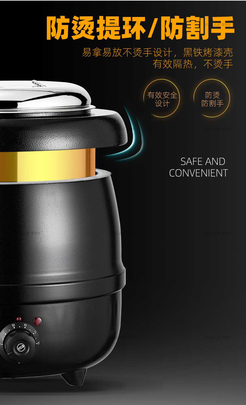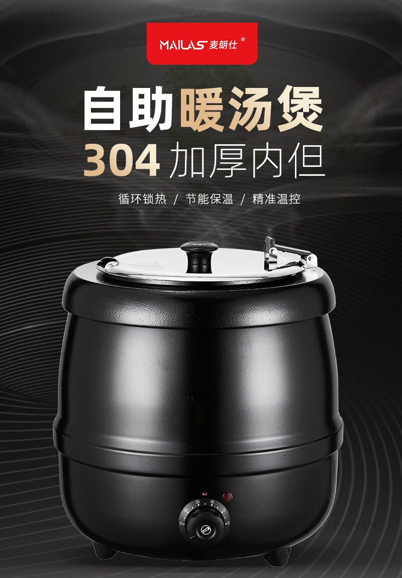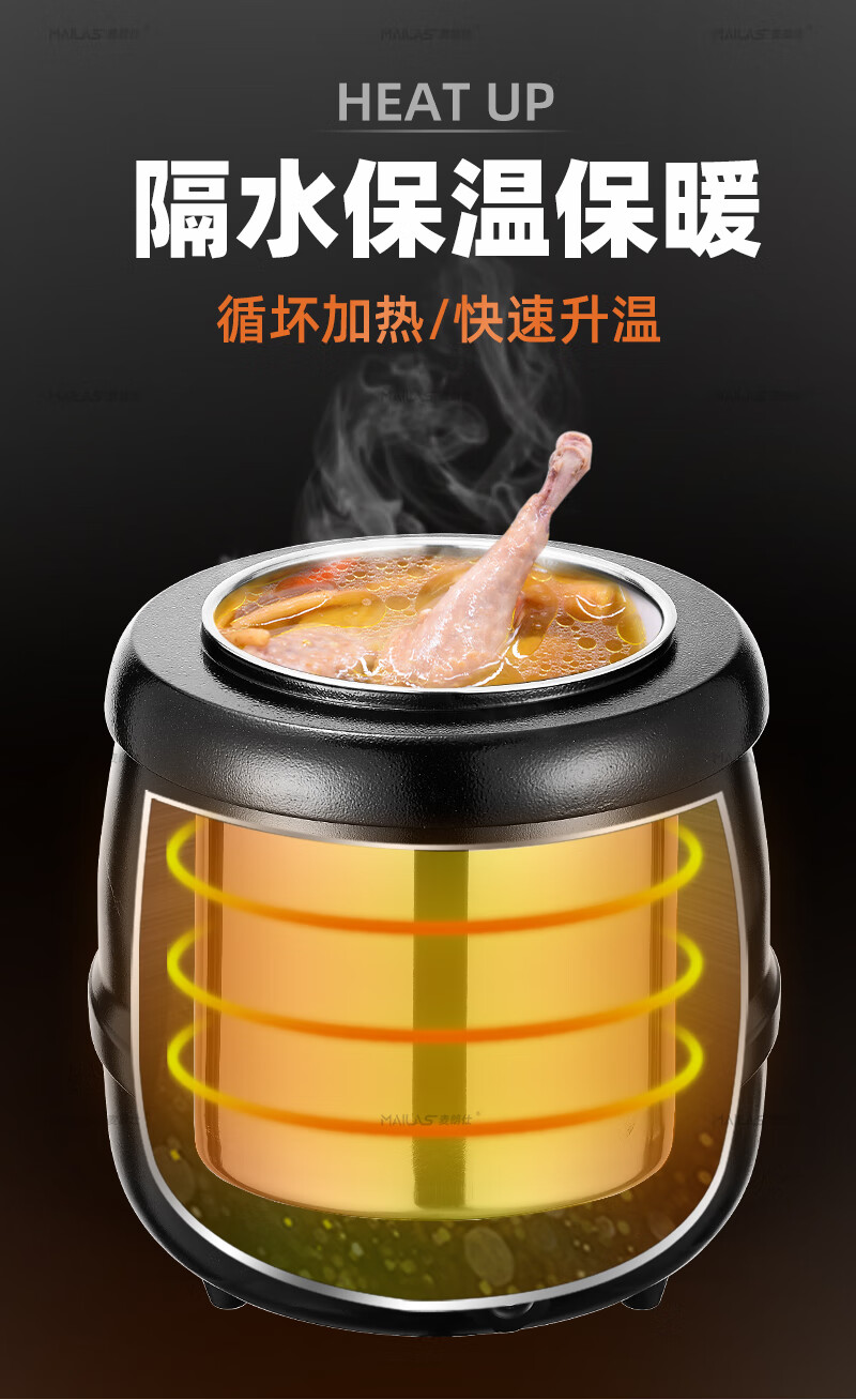Melangshi electronic warm soup cooker commercial 10L insulated pot porridge bucket hotel soup pot buffet soup stove electric heating
