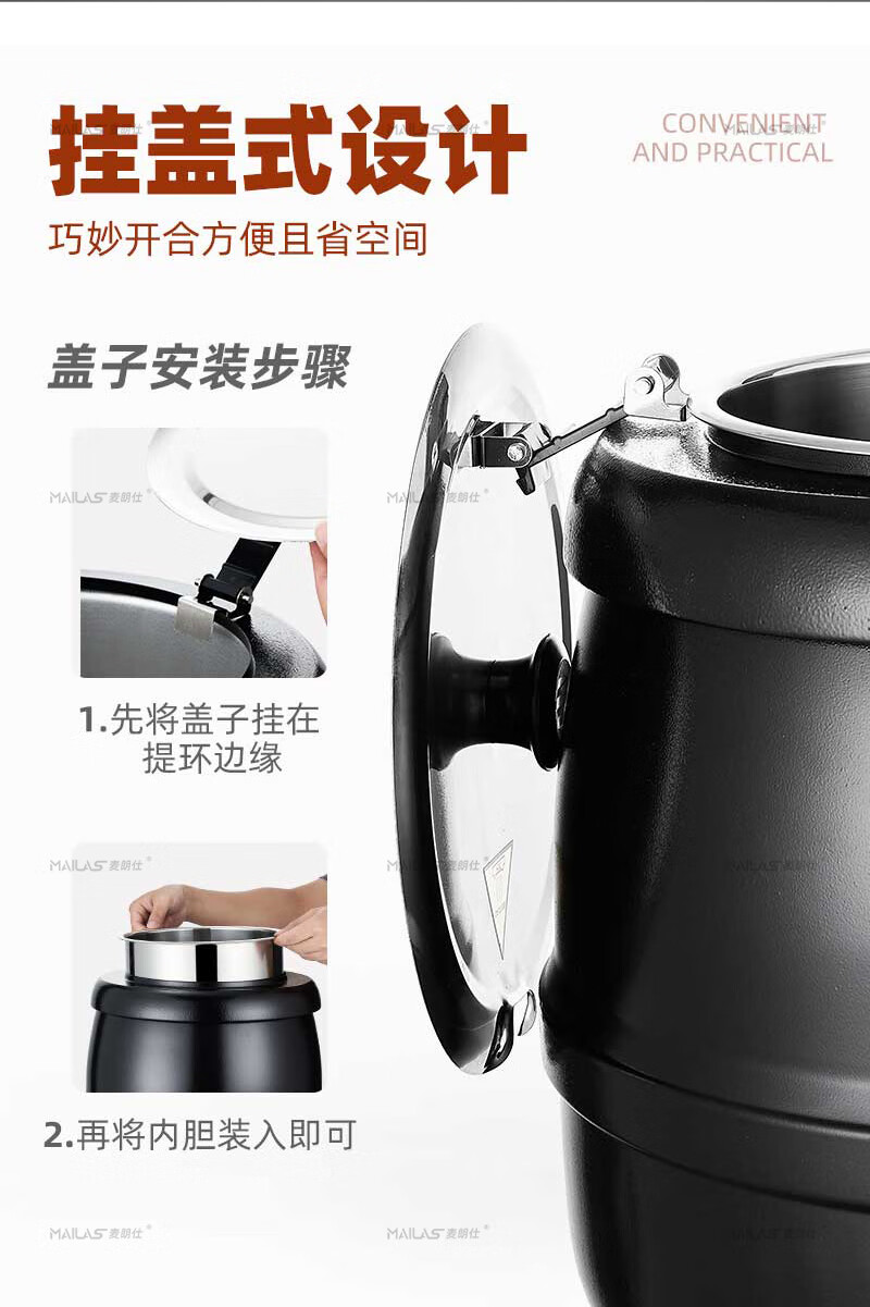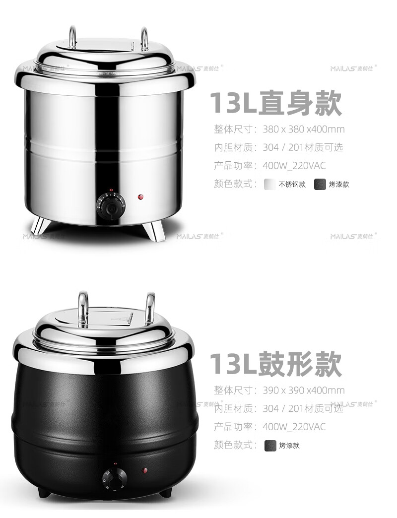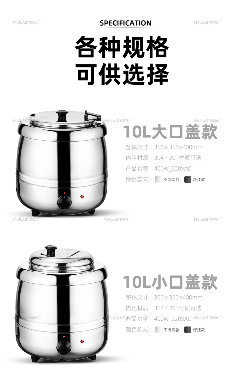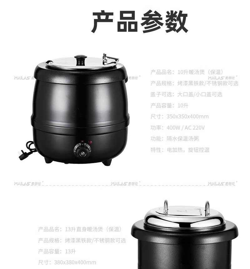 Melangshi electronic warm soup cooker commercial 10L insulated pot porridge bucket hotel soup pot buffet soup stove electric heating