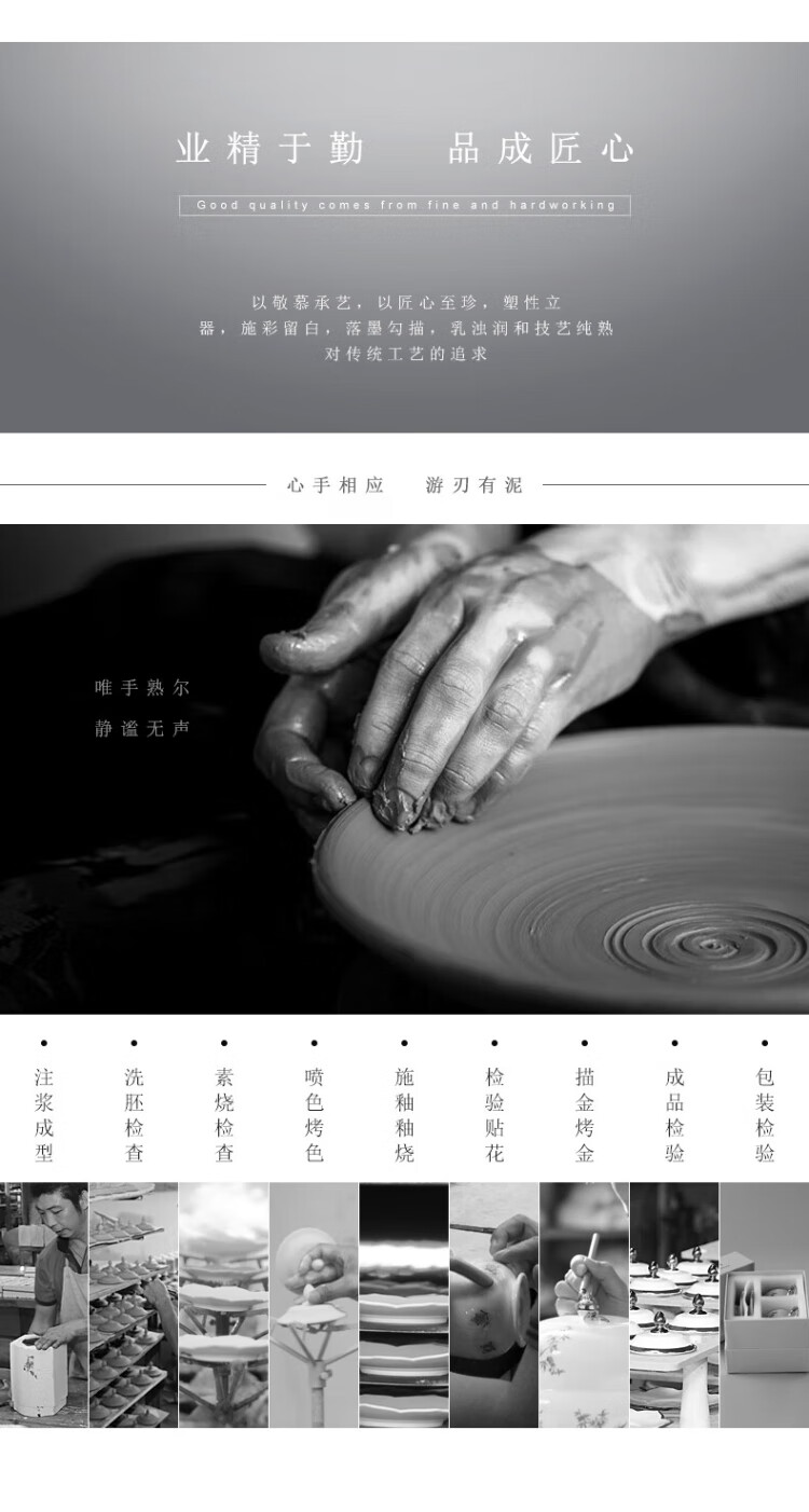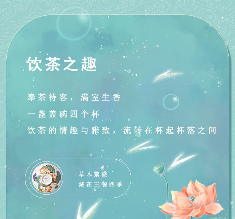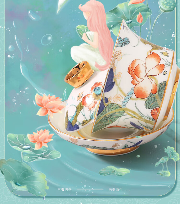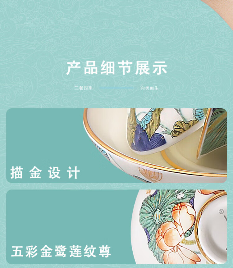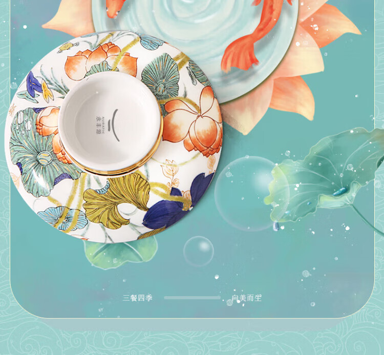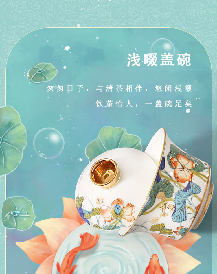 Auratic Chinese porcelain Yongfengyuan Xingfu Heming 7-head ceramic tea set-covered bowl set (4 persons) gift box packaging