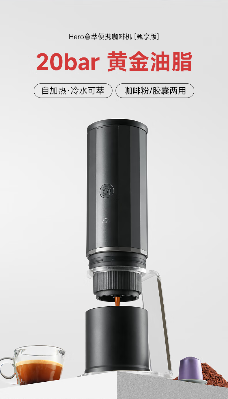 Hero Yicui Zhenxiang Edition fully automatic portable coffee machine self-heating espresso extraction machine capsule coffee machine
