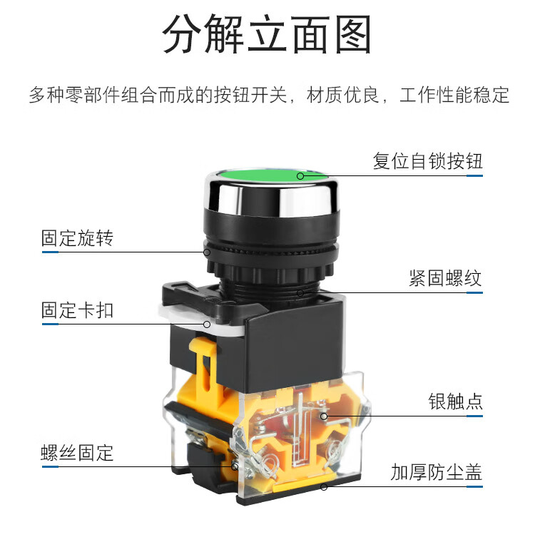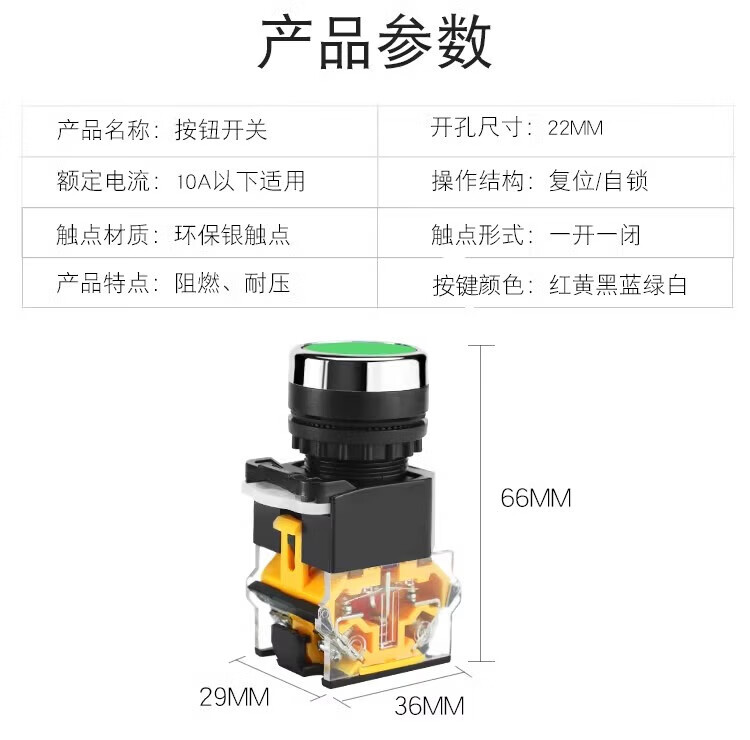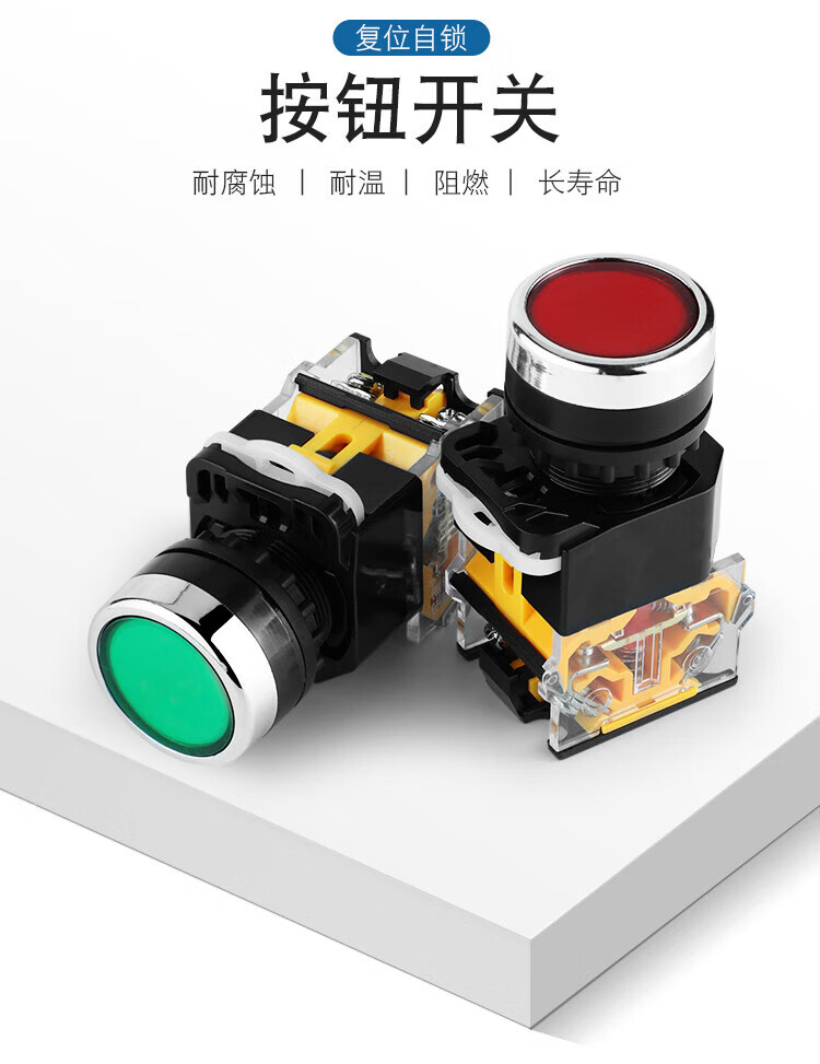 Huijun LA38-11BN push button switch power supply self-locking self-reset start stop round button switch green one open and one closed reset type