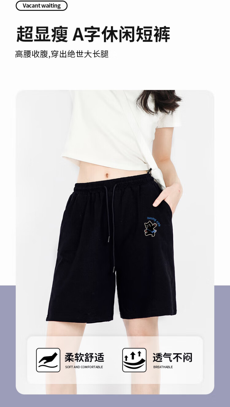 JEANSWEST casual shorts women's 2025 spring new pure cotton super slim sports versatile A-line casual shorts