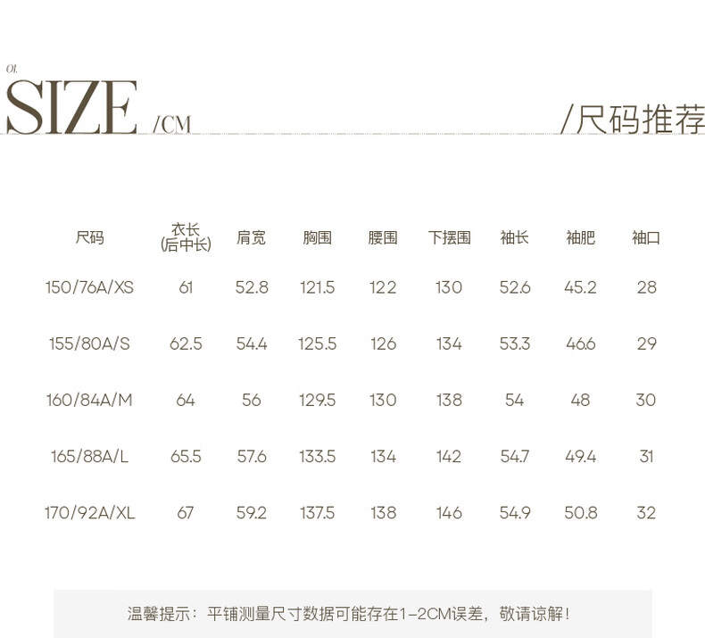 China (cm) 160-165/84-86 165-170 / 88-90 167-172 / 92-96 168-173 / 98-102 170-176 / 106-110