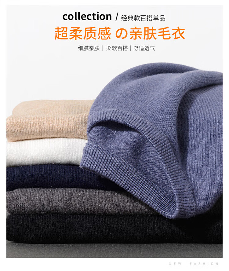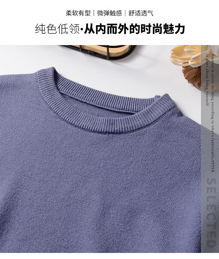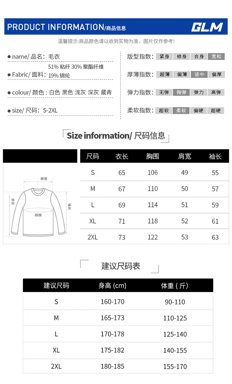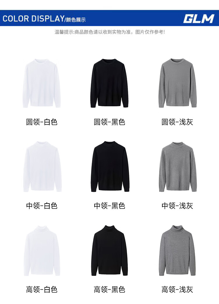 GLM crew neck sweater men's autumn and winter trendy knitted sweater men's casual bottoming sweater men's black L