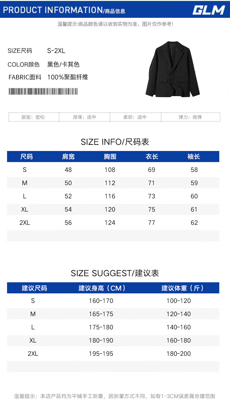 GLM suit men's casual small suit jacket men's handsome slim trend single suit lapel top men black XL