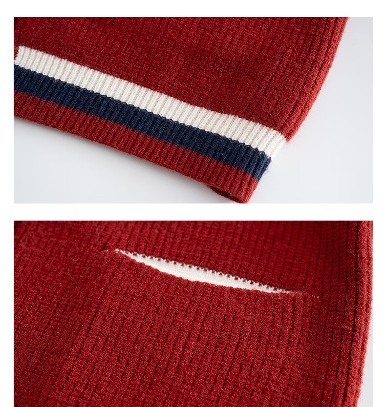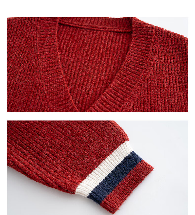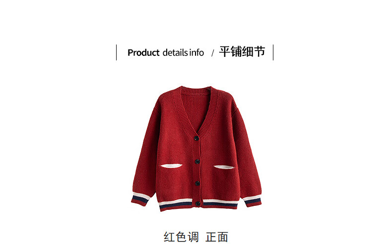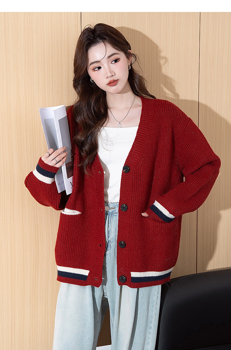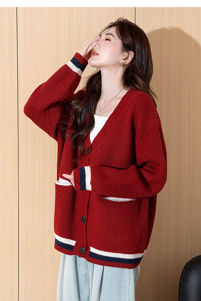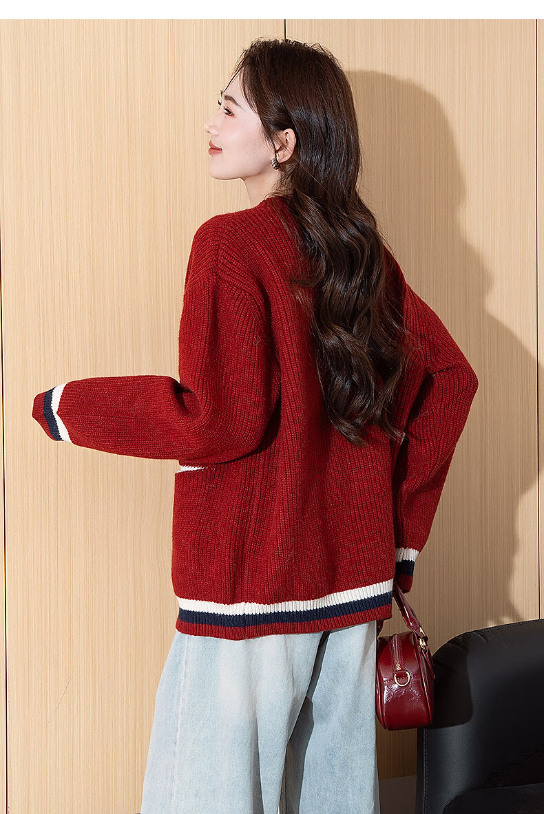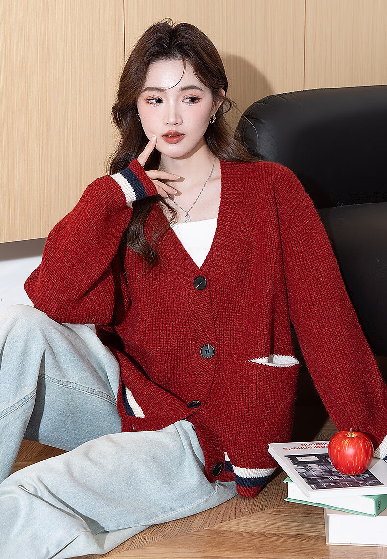 TonLion 2025 Autumn and Winter College Style Slim V-neck Cardigan Women's Knitted Red Jacket High-end Fashion Versatile Trend