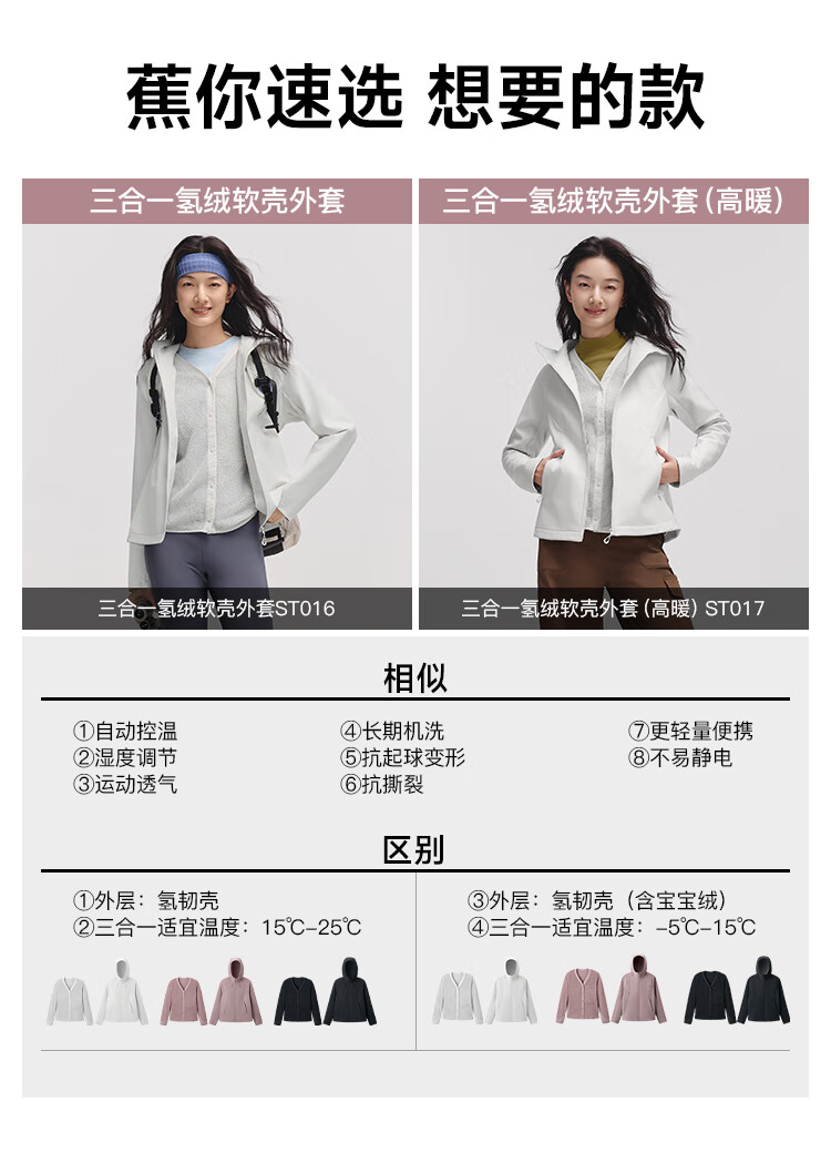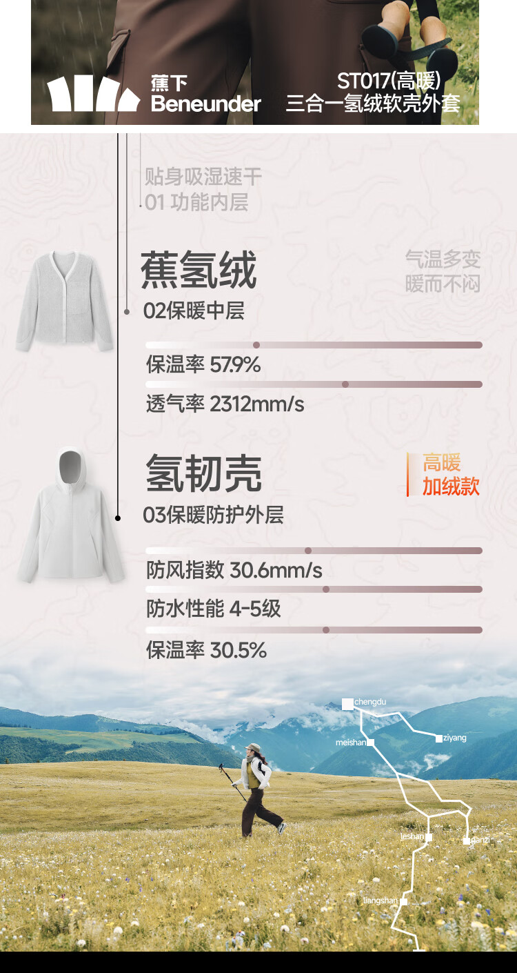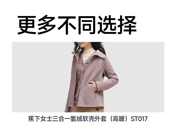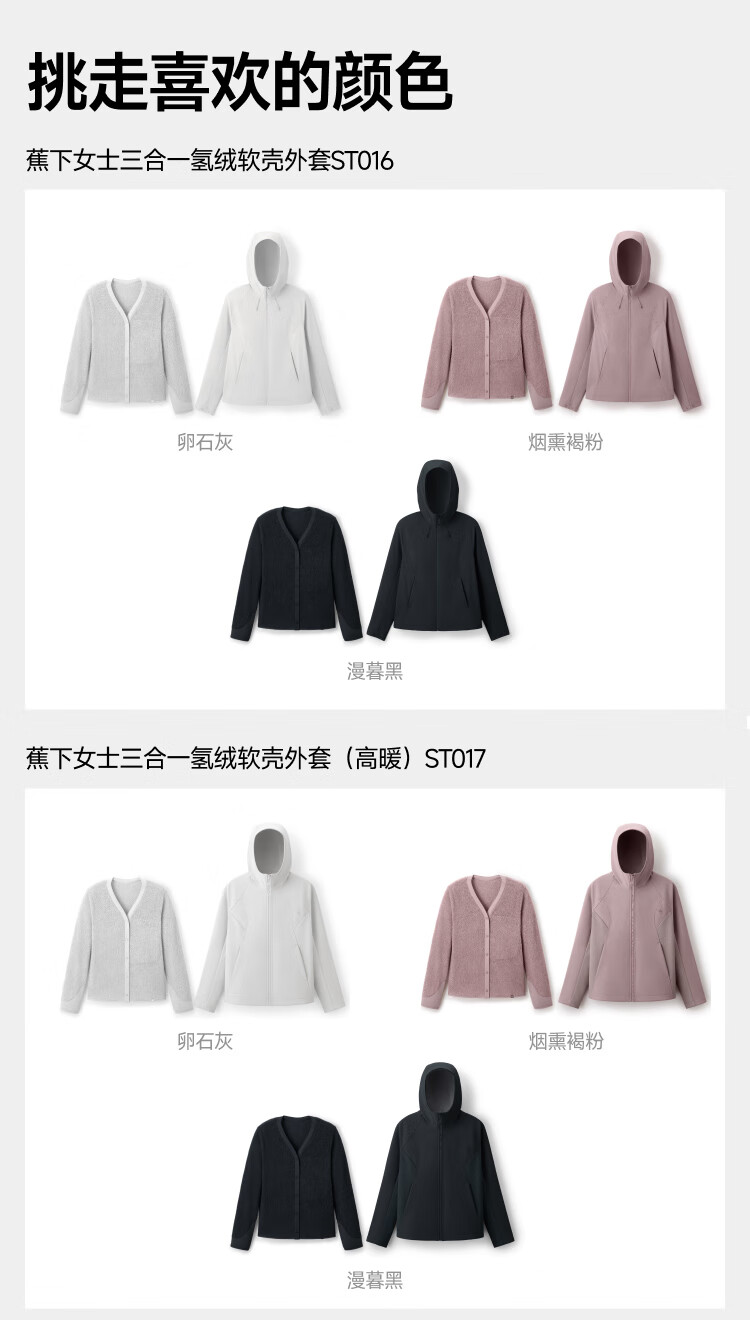 Beneunder jacket women's hydrogen velvet three-in-one high-warm weatherproof warm soft shell outdoor ST017 pebble gray XL