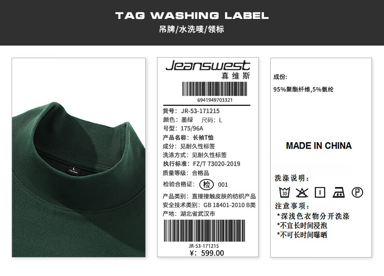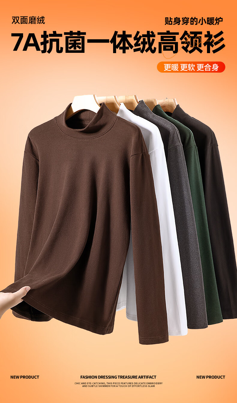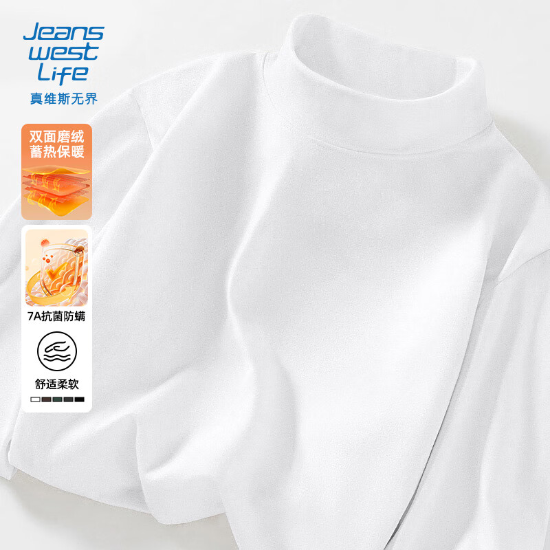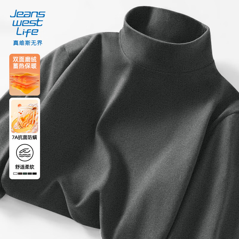 JEANSWEST LIFE Jeans West velvet turtleneck bottoming shirt men's long-sleeved T-shirt autumn and winter new 7A antibacterial men's thermal underwear