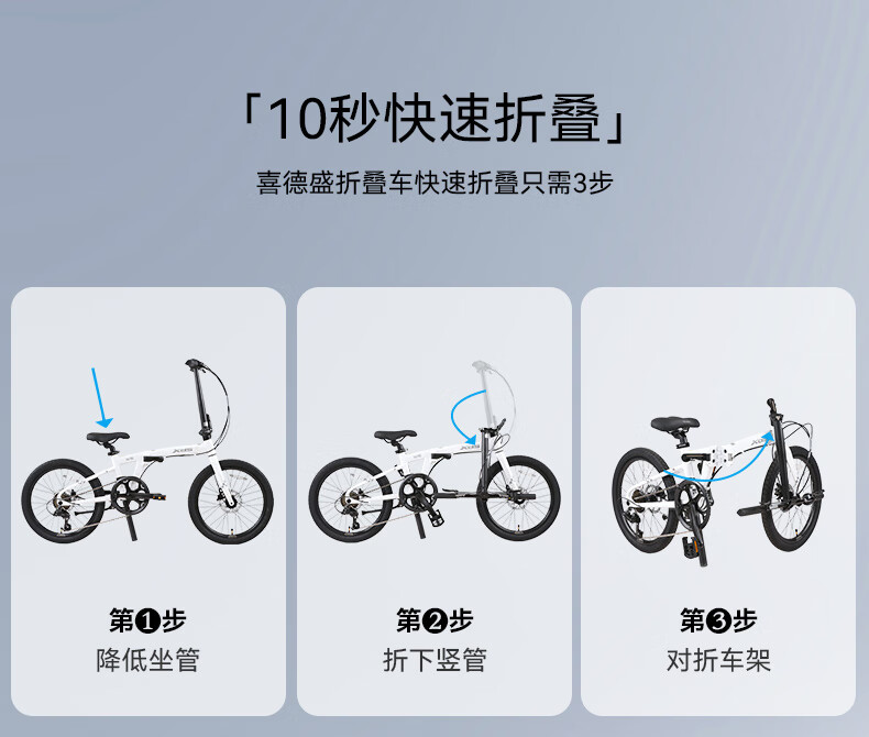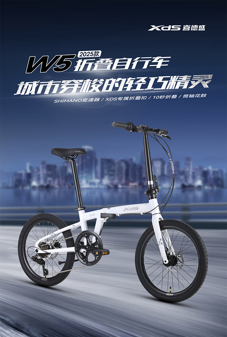Xidesheng folding bicycle 25 models W5 transmission 6 speed moonlight white 20 inches