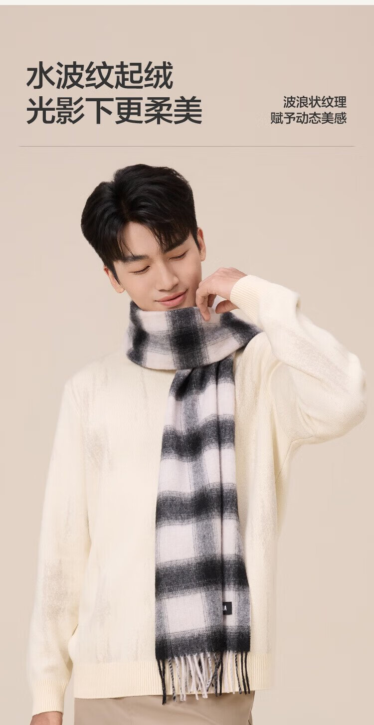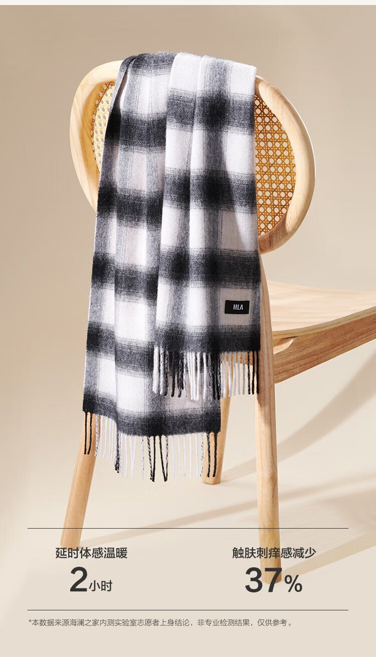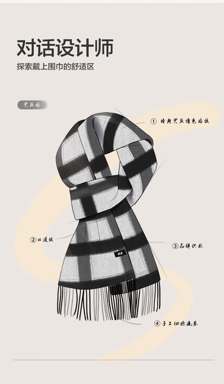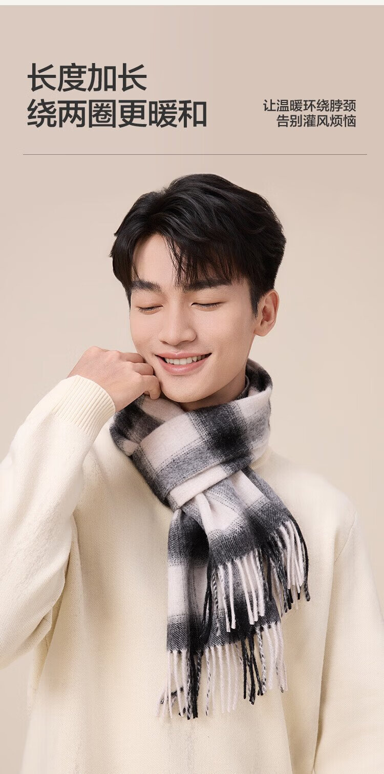 Heilan House Men's Pure Wool Scarf Fashion Plaid Scarf Versatile Autumn and Winter Warmth, Cold and Windproof Outdoor Black and Gray Plaid