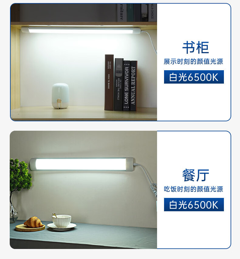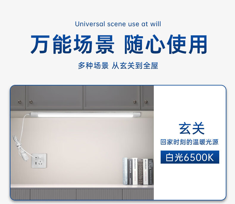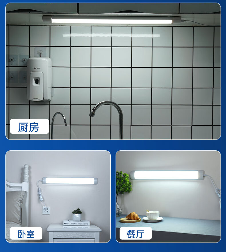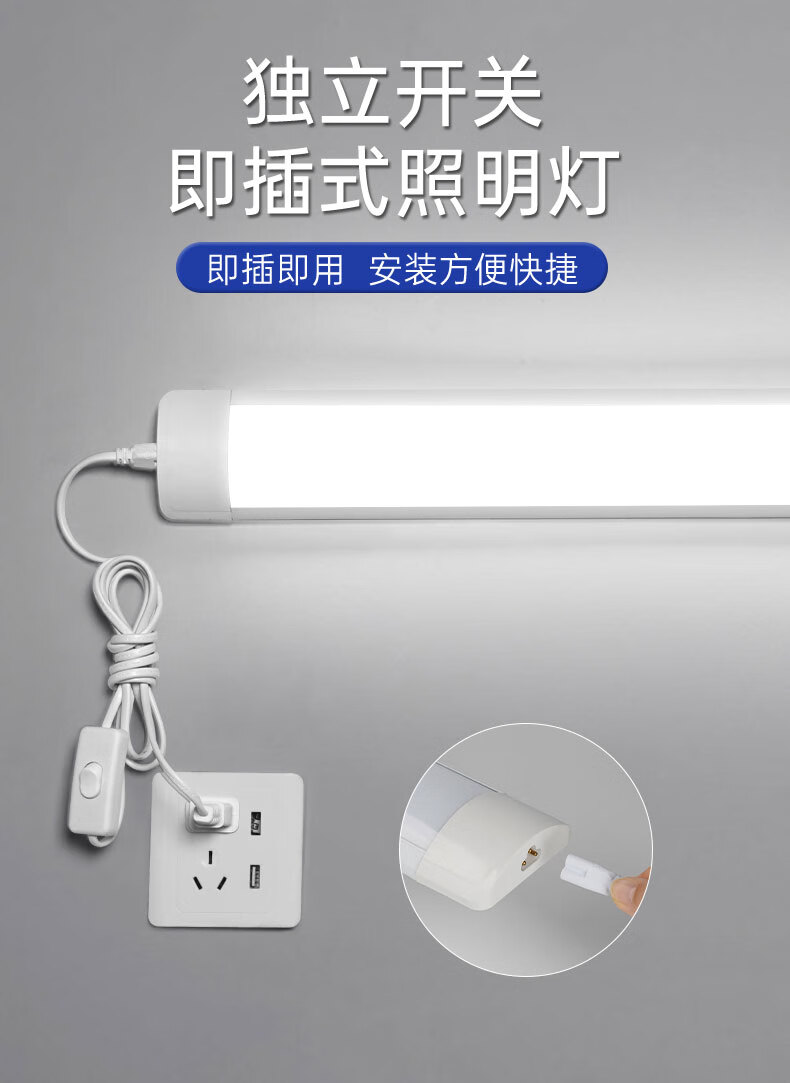 Whale and Light LED fluorescent tube plug-in strip lamp super bright fluorescent lamp home student dormitory lamp bedroom special table lamp semi-circular style - 1.2 meters - with switch line
