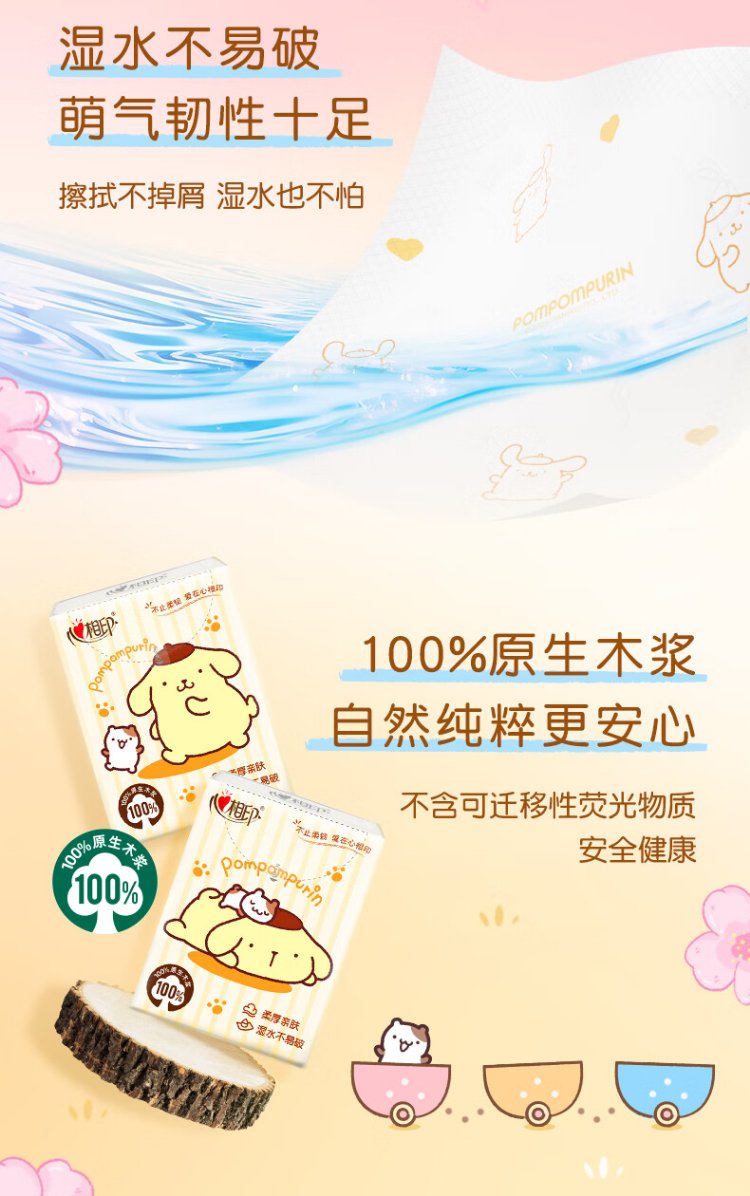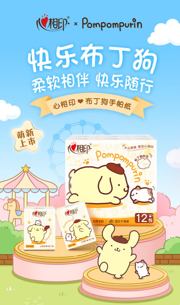 Heart to Heart, Tian Xuning's same model, handkerchief paper pudding dog joint IP model, 4 layers, 7 pieces, 12 packs, printing is not easy to break when wet