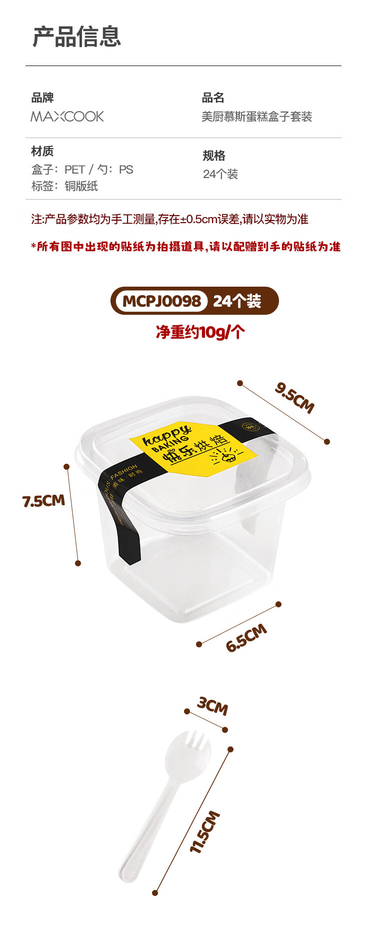 MAXCOOK Pudding Cup Disposable Mousse Cake Box Guolao Packing Box Yangzhi Nectar Bottle 24 Pieces MCPJ0098