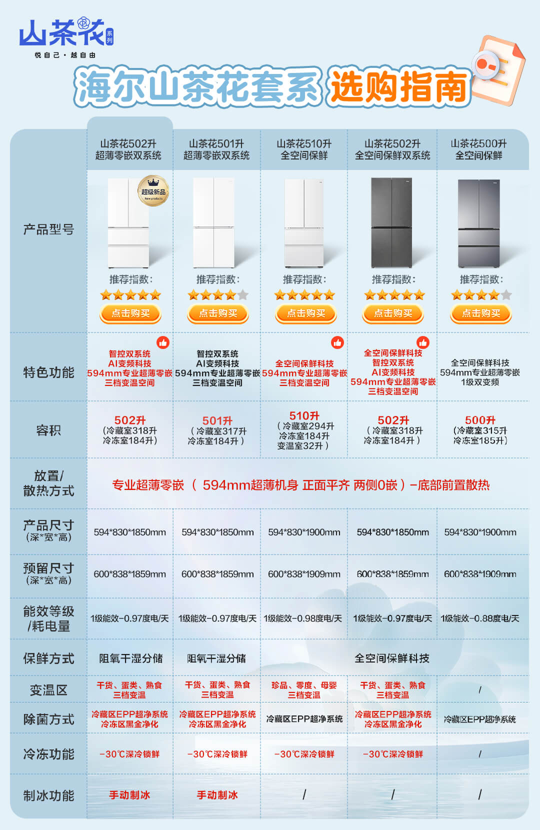 Haier Camellia-Yaoye 500L Refrigerador francés ultradelgado sin integración de espacio completo de 594 mm Eficiencia energética de primera clase BCD-500WGHFD1BXTU1 Subsidio nacional del 20%