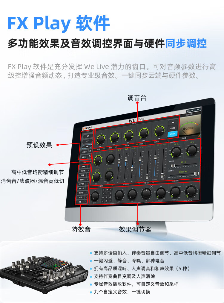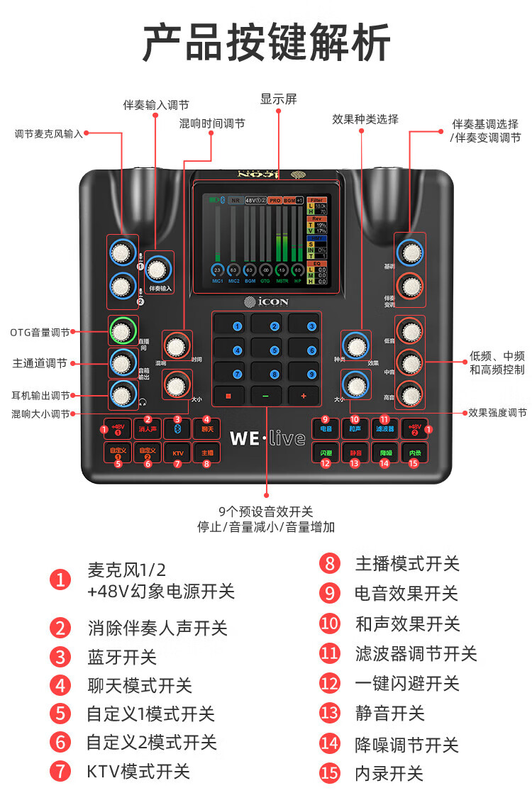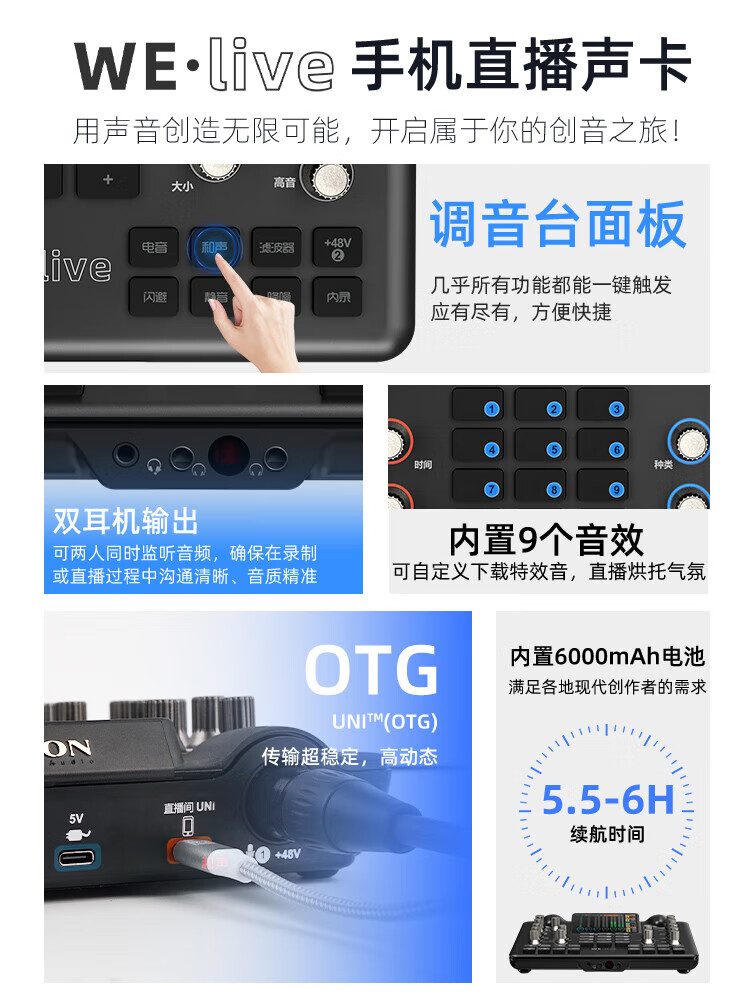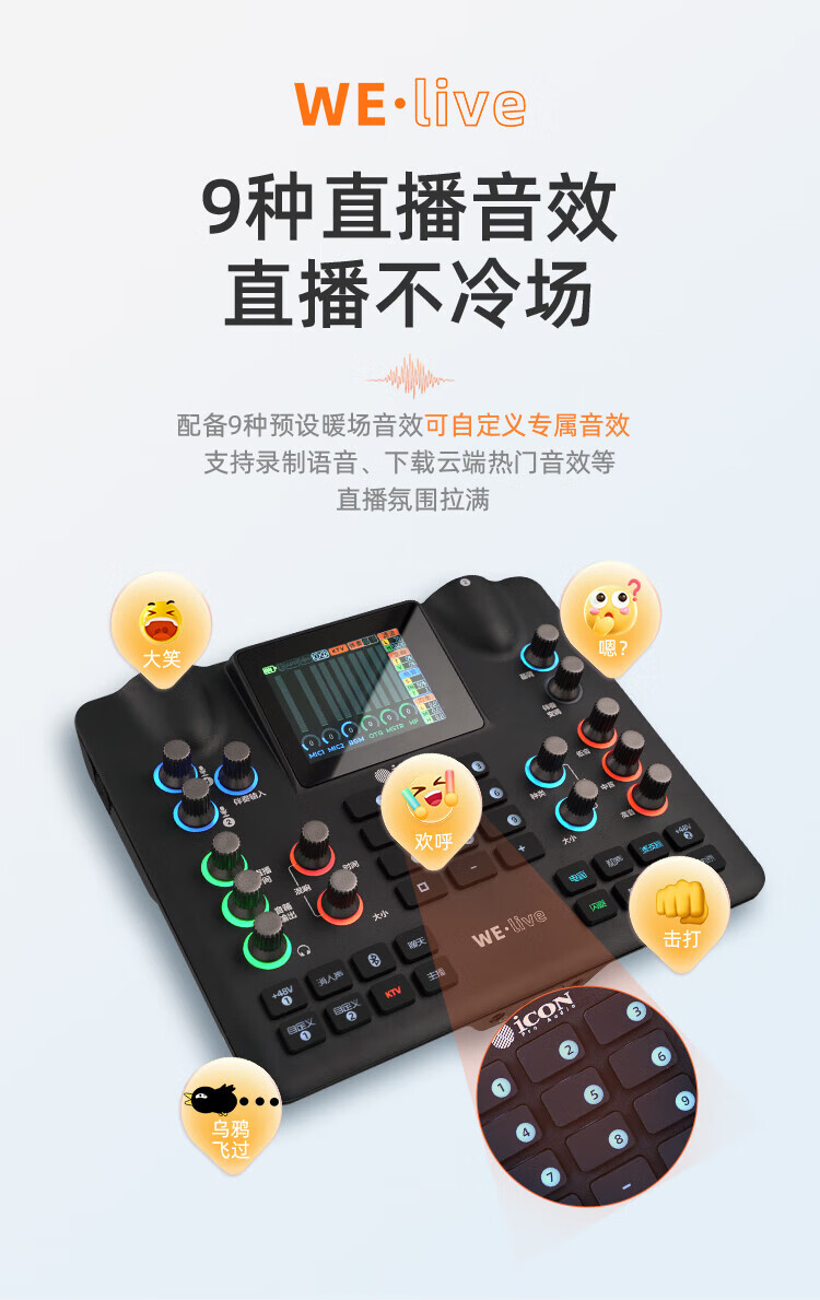 Aiken iCON super new product WeLive mobile phone sound card portable outdoor live broadcast wireless Bluetooth accompaniment anchor recording singing and selling karaoke computer mobile phone sound card equipment