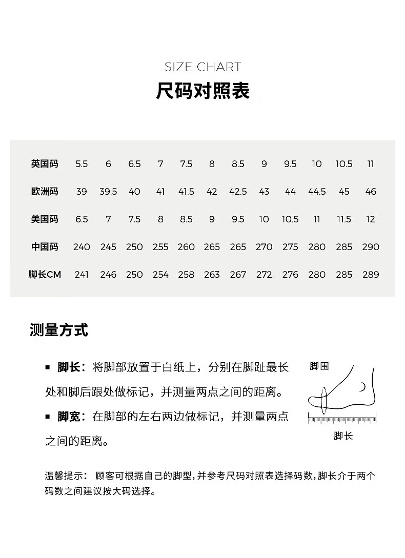 China (cm) 36 - 37 38 - 39 40 - 42 43 - 44 45 - 47