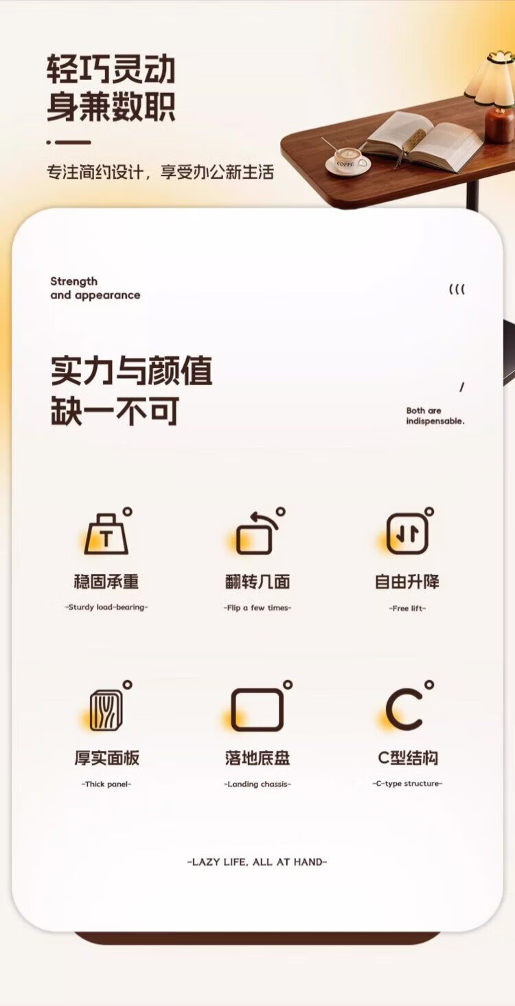 Peppa Pig champion bedside table can be lifted, rotated and multi-functional small table for home bedroom lazy desk mobile simple storage rack
