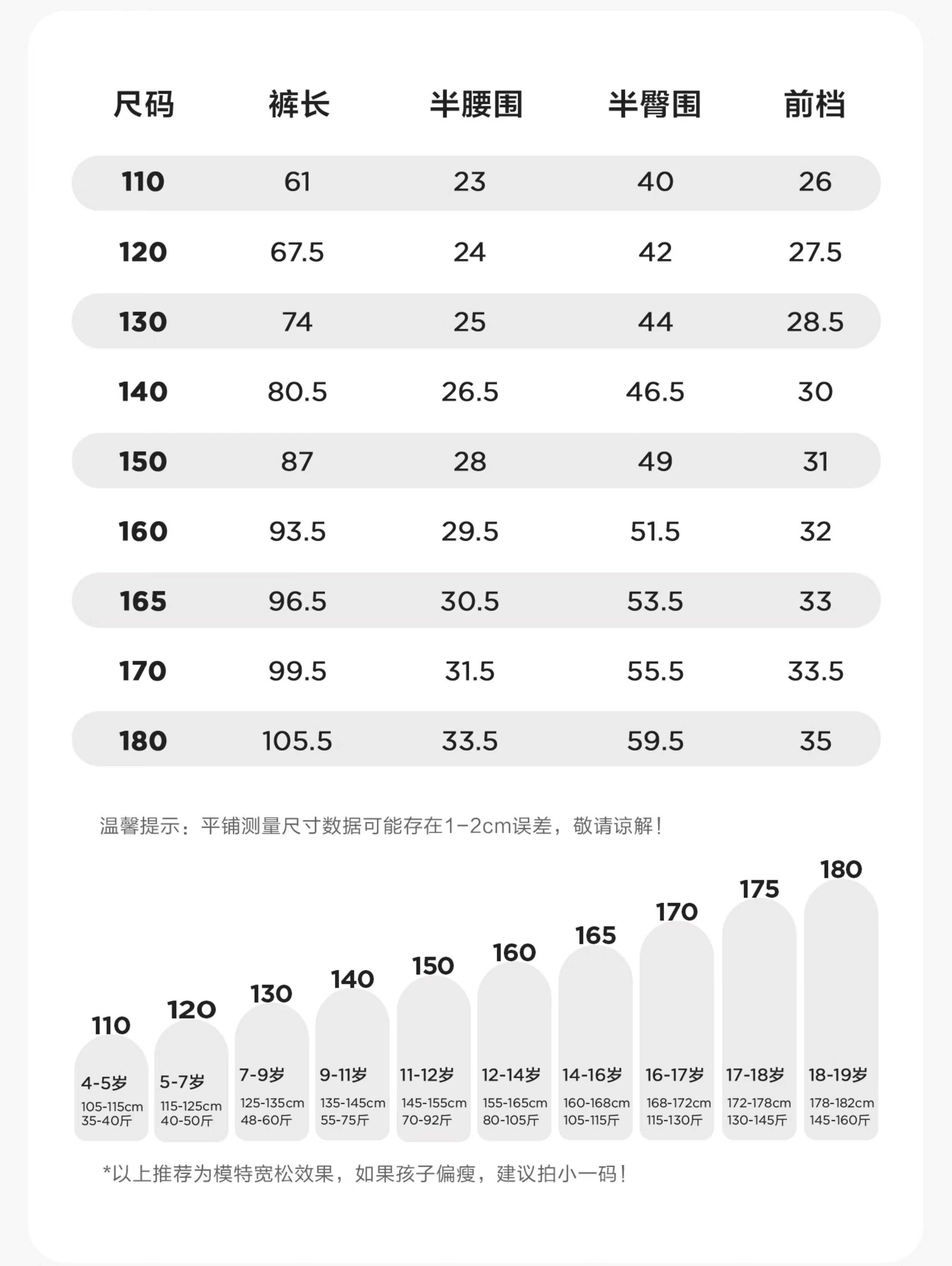 China (cm) 160-165/84-86 165-170 / 88-90 167-172 / 92-96 168-173 / 98-102 170-176 / 106-110