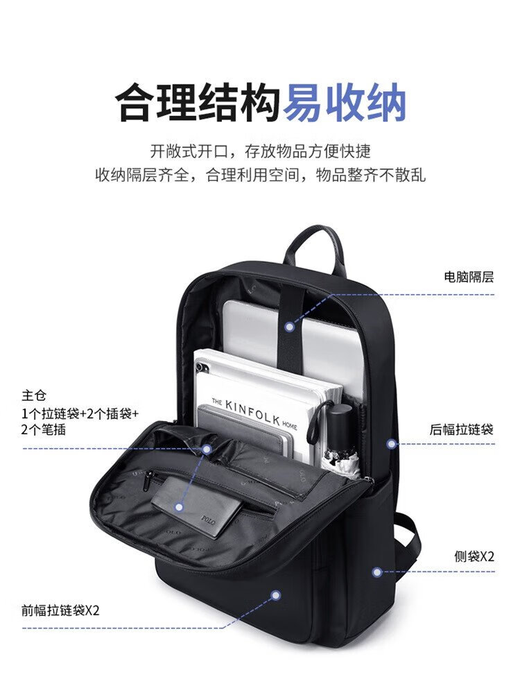 POLO backpack men's large-capacity travel backpack male student school bag 16-inch computer bag male business travel bag male