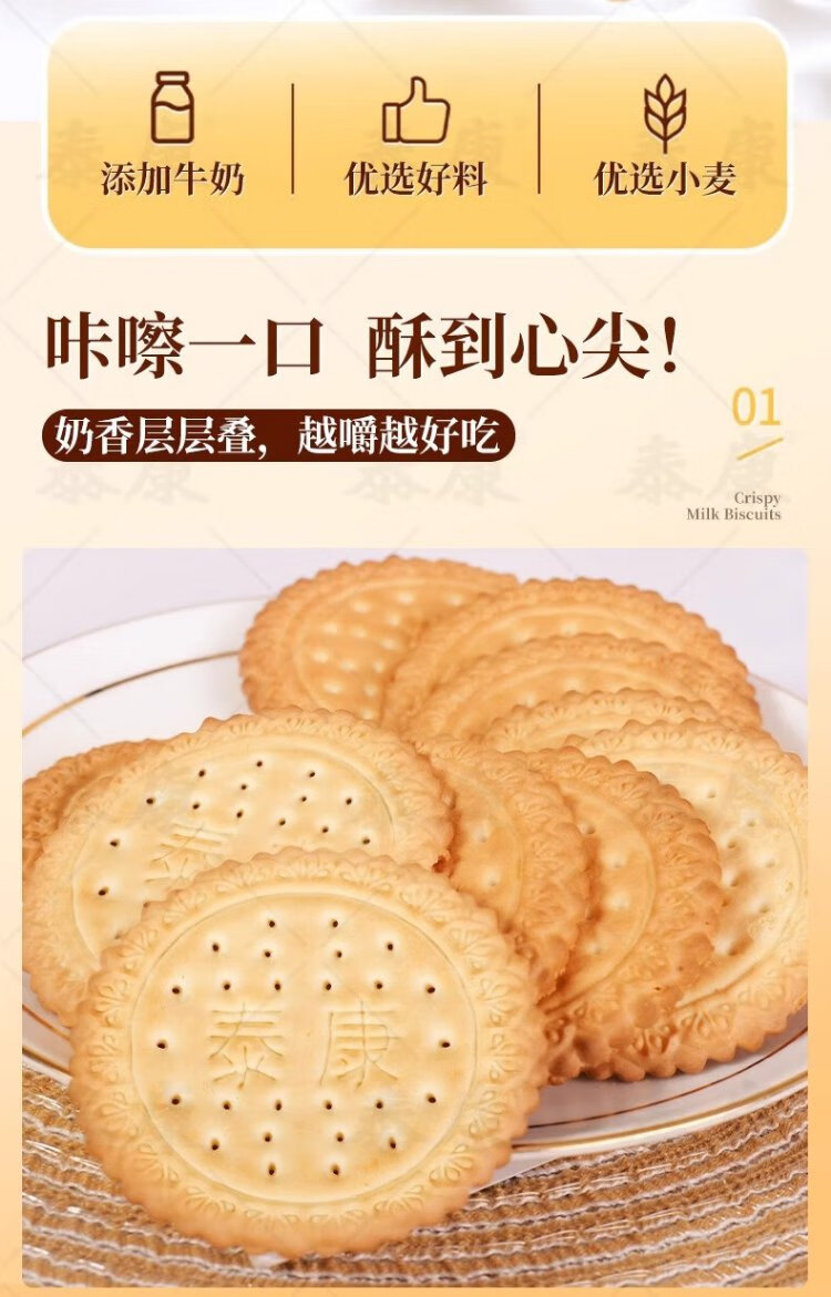Taikang Big Milk Biscuits 400g Children's snacks Nutritious breakfast Afternoon tea snacks and pastries Individually packaged