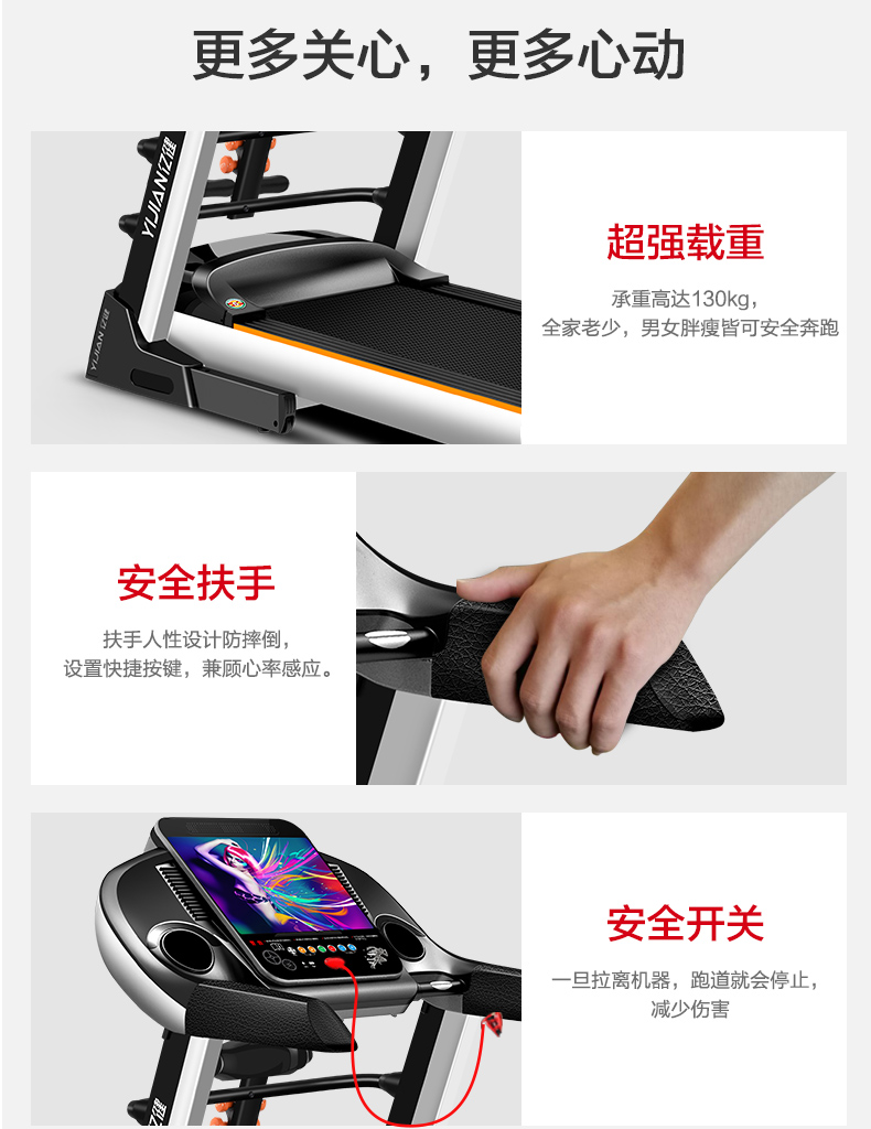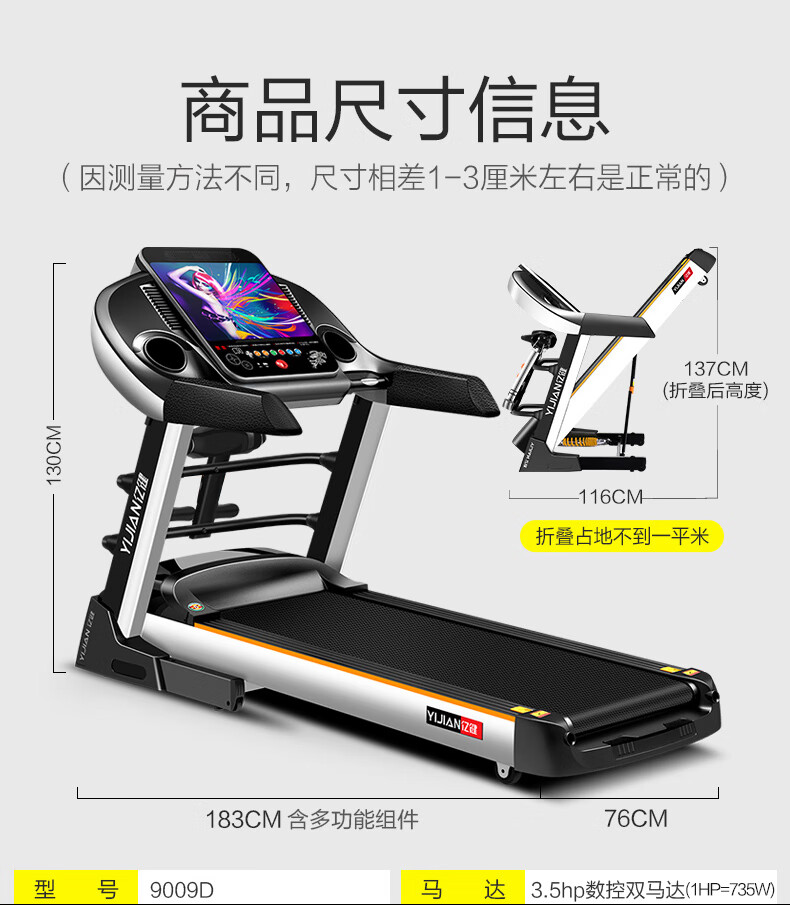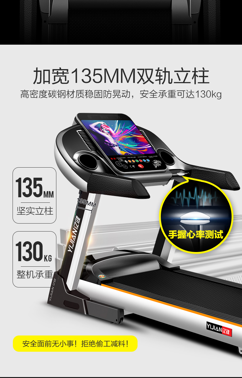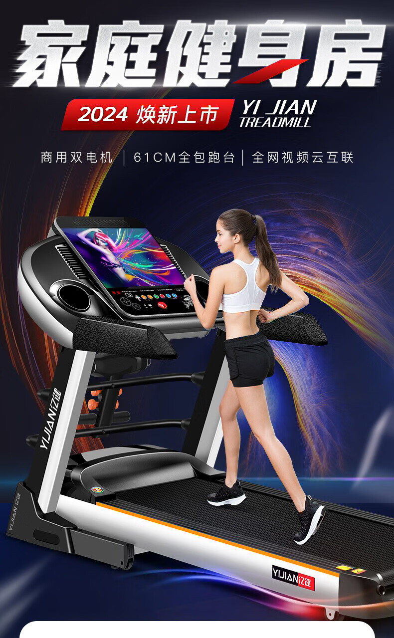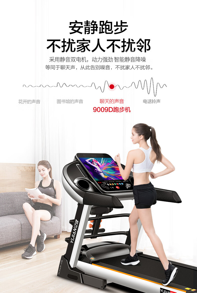 YIJIAN treadmill for home use silent foldable large load-bearing gym-level walking machine indoor fitness equipment 9009D blue screen multi-function/electric slope