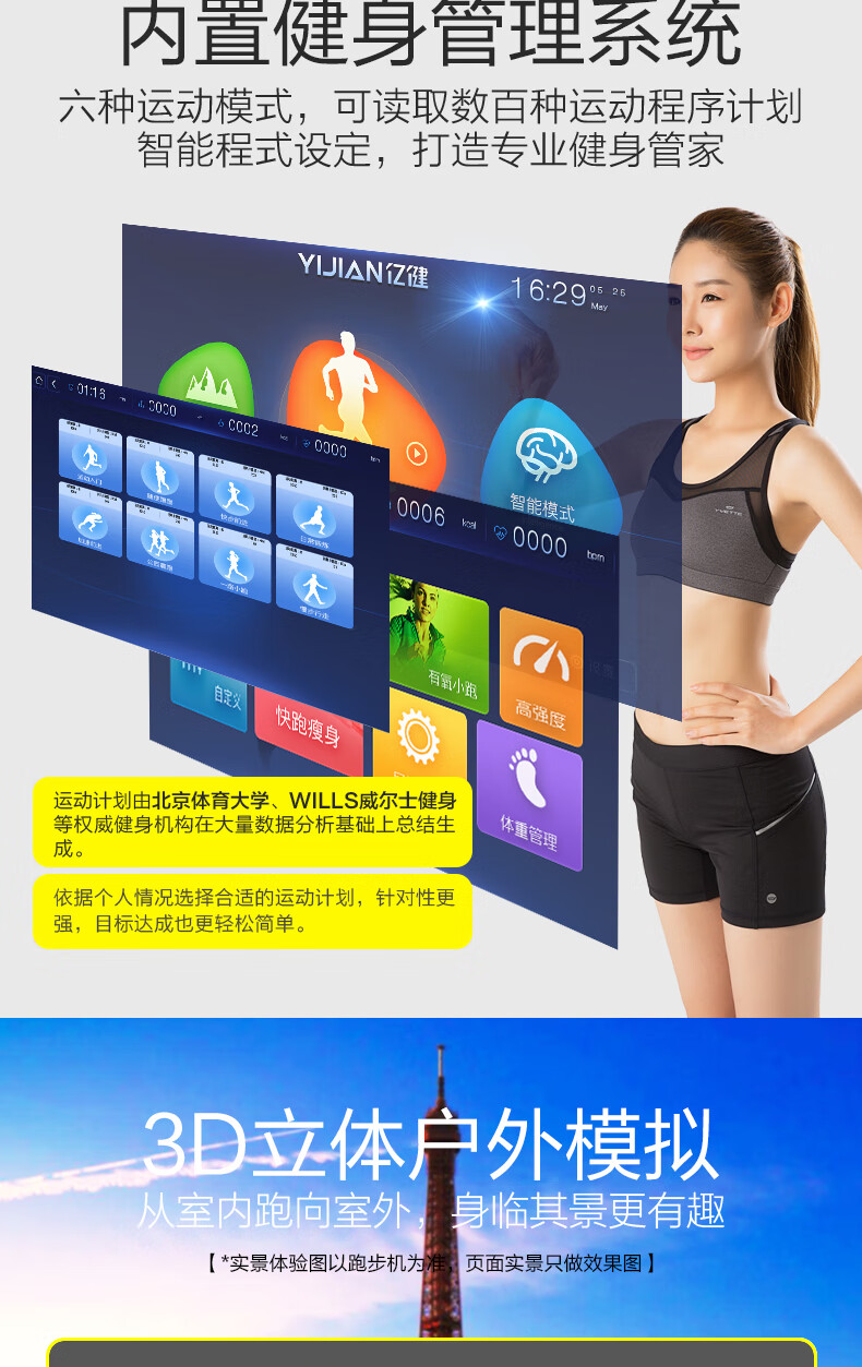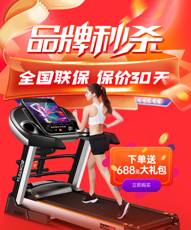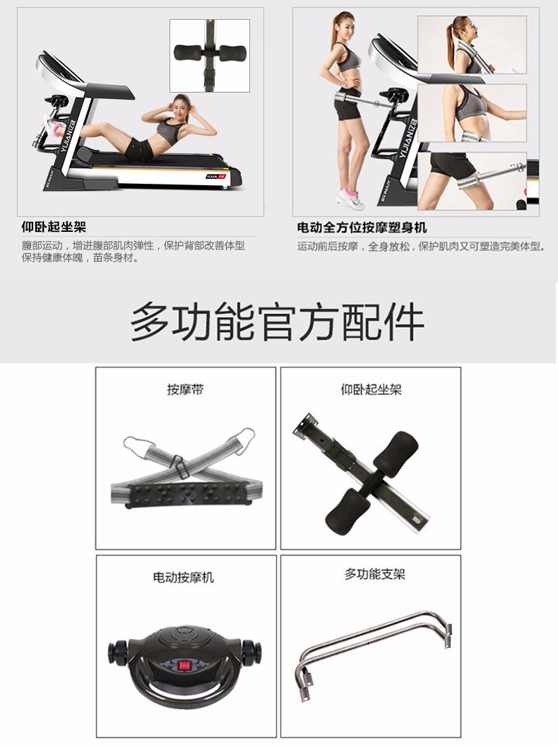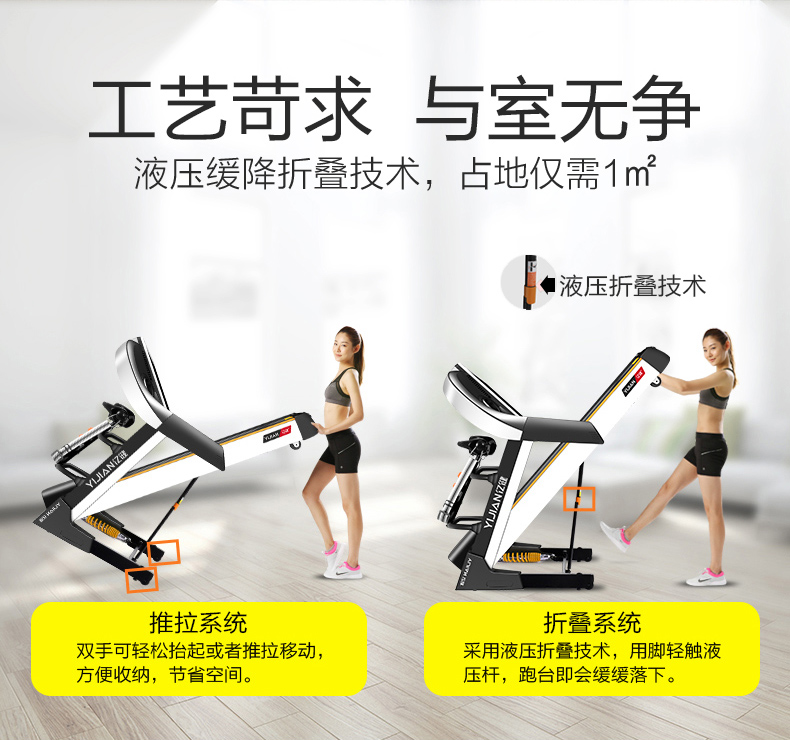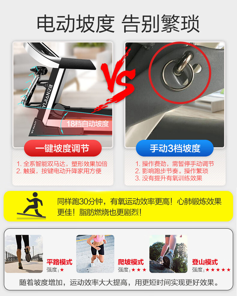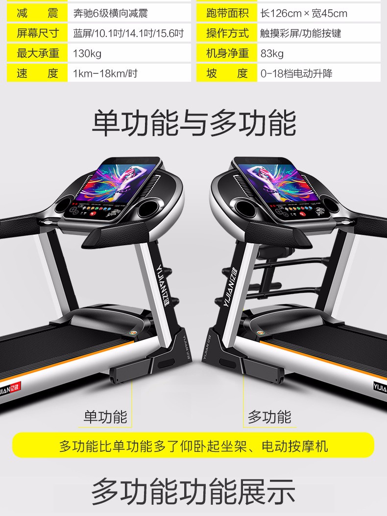 YIJIAN treadmill for home use silent foldable large load-bearing gym-level walking machine indoor fitness equipment 9009D blue screen multi-function/electric slope