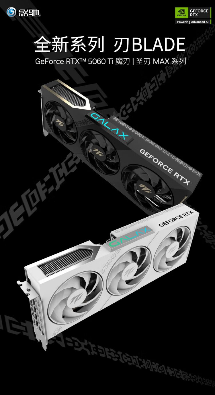 GALAXY GeForce RTX 5060 Ti Holy Blade MAX OC 16GB GDDR7 DLSS 4 E-Sports Light Chasing Game/AI Local Deployment Graphics Card