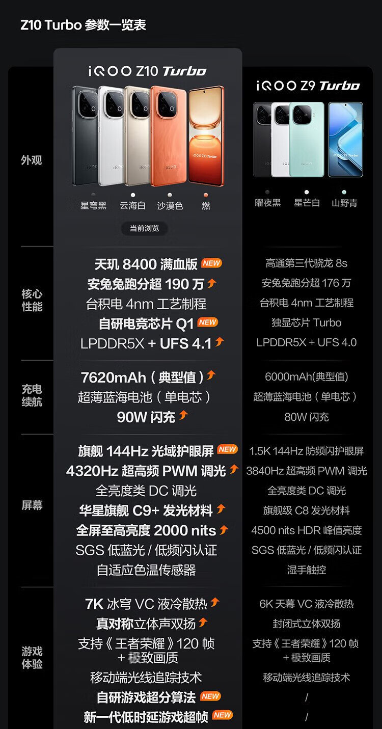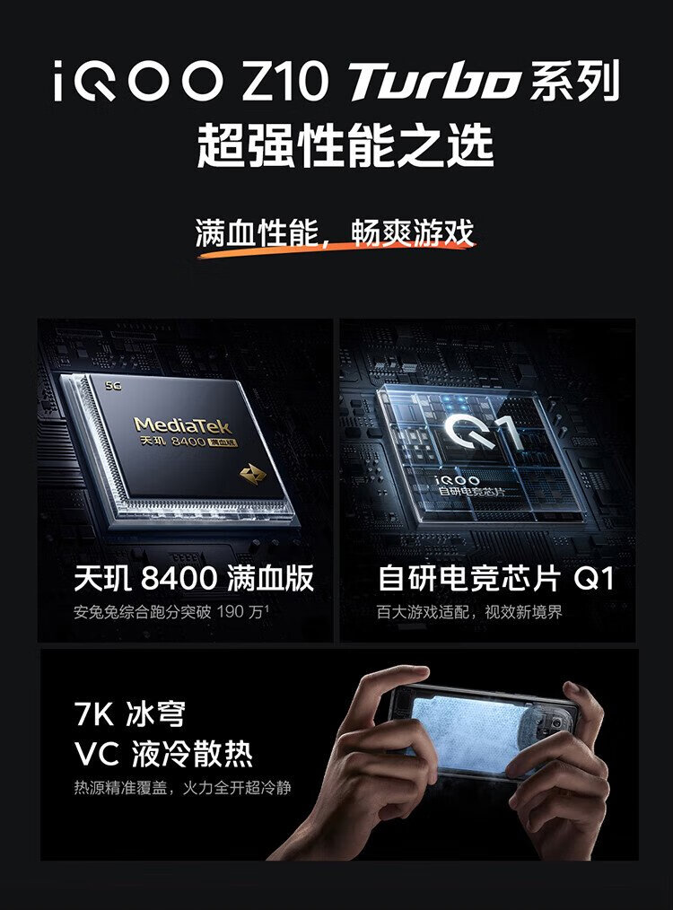 Vivo iQOO Z10 Turbo 12 GB + 256 GB Dimensity 8400 Vollblutversion 7620 mAh ultradünner Blue-Ocean-Akku selbst entwickelter E-Sport-Chip Q1-Geschenkkarte für Mobiltelefone