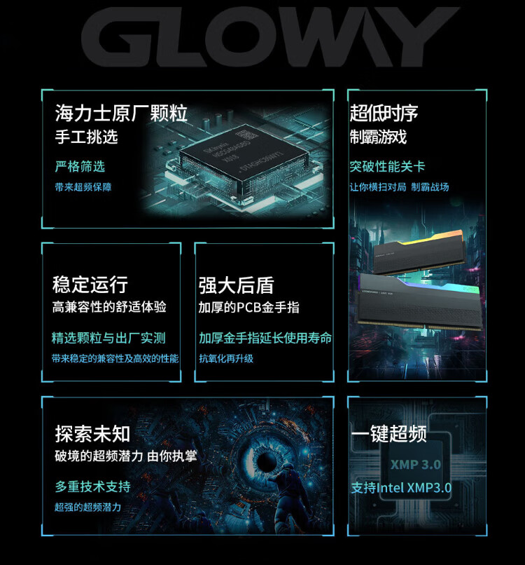 Gloway 48GB (24GBx2) DDR5 8000 desktop memory Longwu RGB light strip Hynix M-die CL38 Starry Sky Black