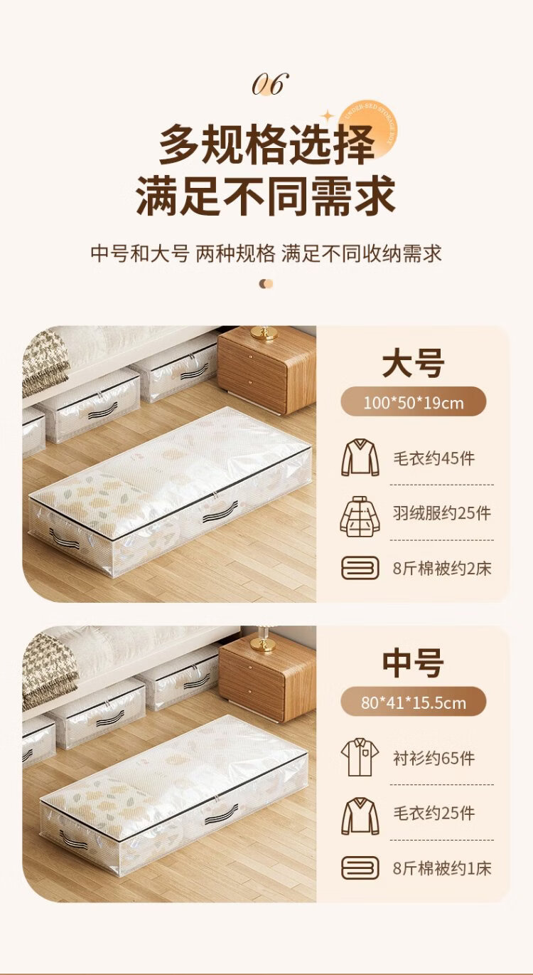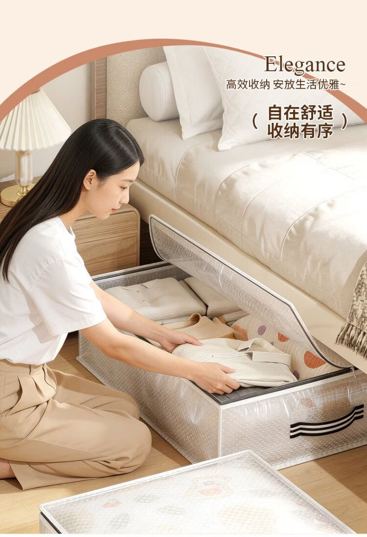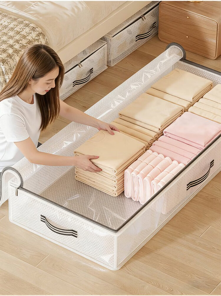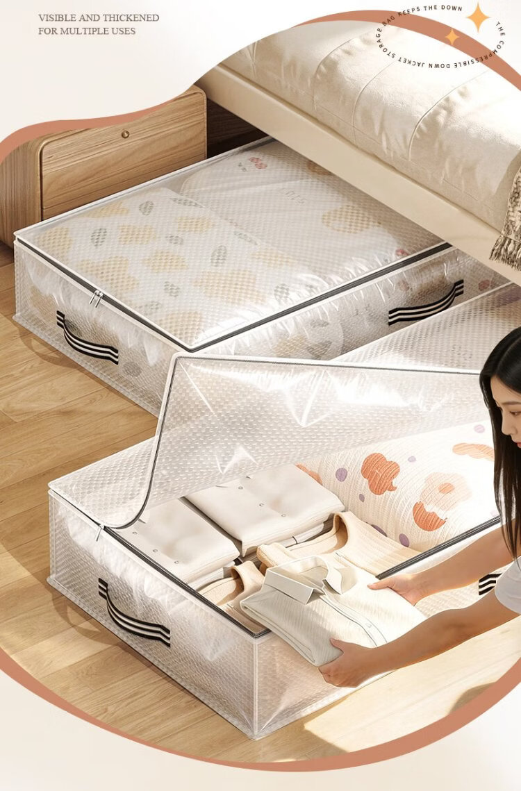 Baicaoyuan PE thickened transparent bed bottom storage bag household flat space-saving large-capacity clothing moisture-proof storage artifact large size